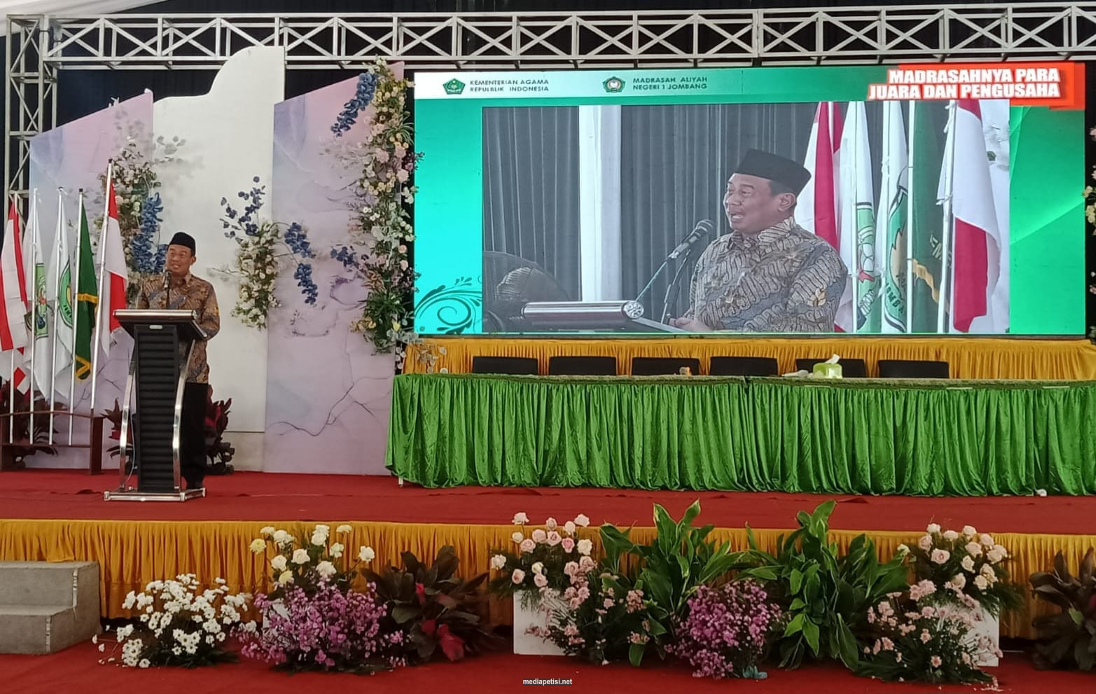 Kepala Kantor Wiilayah Kementerian Agama Provinsi Jawa Timur Husnul Maram menyampaikan selamat kepada para siswa kelas 12 MAN 1 Jombang yang baru diwisuda, semoga menjadi generasi Indonesia mandiri, berprestasi, dan sholeh Sholihah.
