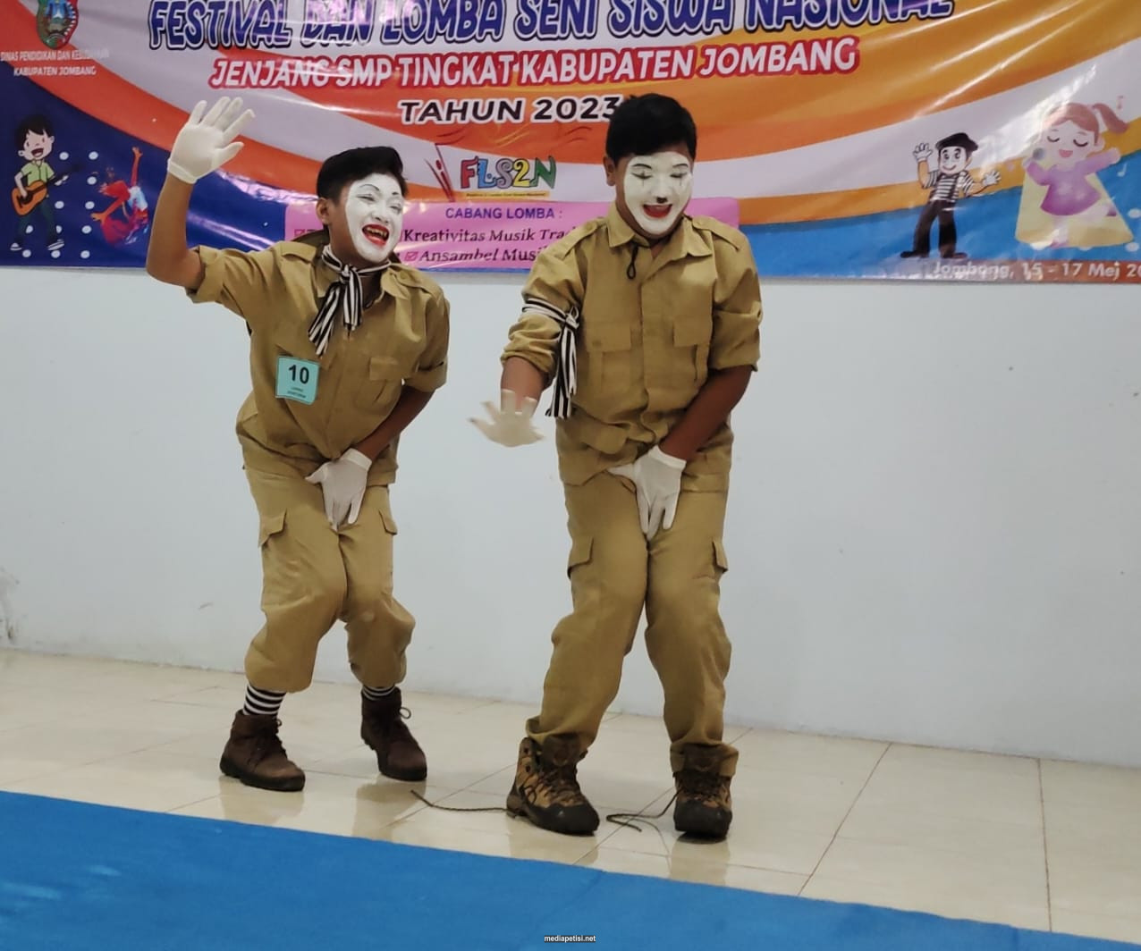 Caption Foto : Raih juara 1 Siswa SMPN 2 Jombang saat menampilkan Pantomim di FLS2N