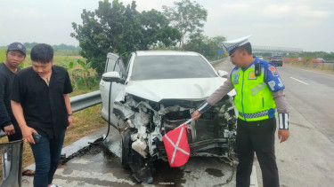 Akibat peristiwa itu, mobil yang dikemudikan oleh Aldis Himawan (19) warga Desa Lasem, Kecamatan Lasem, Kabupaten Rembang Jawa Tengah, menabrak guadril tol hingga mengalami kerusakan parah.
