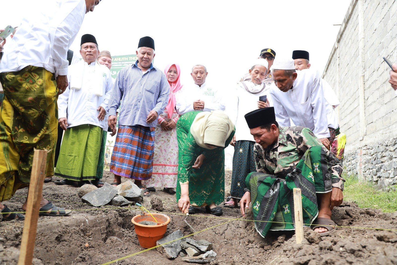 Caption Foto : Bupati Jombang saat meletakkan batu pertama pembangunan Masjid Thoriqoh Al Farichah Cukir