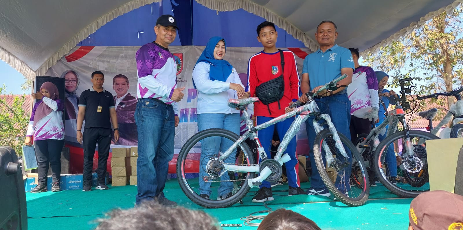 “Untuk itu, perlombaan ini membangkitkan kembali olahraga tradisional di Kabupaten Jombang. Sedangkan olahraga tradisional yang dipertandingkan di antaranya lomba lomba perseorangan yakni egrang, balap karung dengan peserta siswa SD, SMP perangkat desa dan Ormas. Untuk lomba beregu yakni tarik tambang dengan peserta perangkat desa, ibu PKK dan ormas. Disediakan doorprize sepeda gunung, kipas angin, kompor gas dan lainnya,” jelas Bambang.