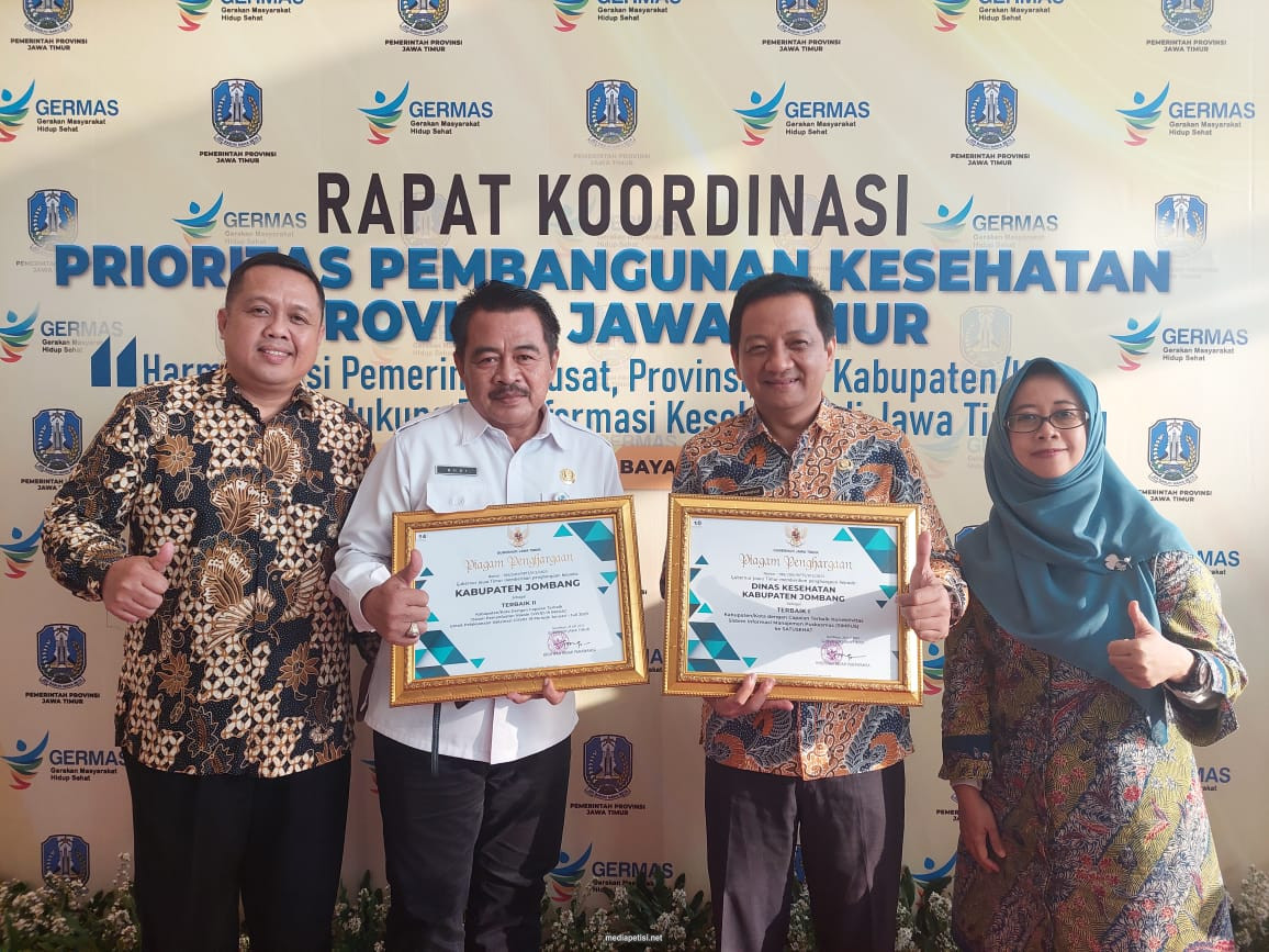 Penghargaan diserahkan oleh Gubernur Jawa Timur Khofifah Indar Parawansa kepada Sekretaris Daerah Kabupaten Jombang Agus Purnomo, pada acara Rapat Koordinasi Prioritas Pembangunan Kesehatan Provinsi Jawa Timur Tahun 2023 yang diselenggarakan di Hotel Novotel Samator Surabaya pada Rabu – Kamis 26-27 Juli 2023, yang mengusung tema “Harmonisasi Pemerintah Pusat, Provinsi, dan Kabupaten/Kota dalam Mendukung Transformasi Kesehatan di Jawa Timur.