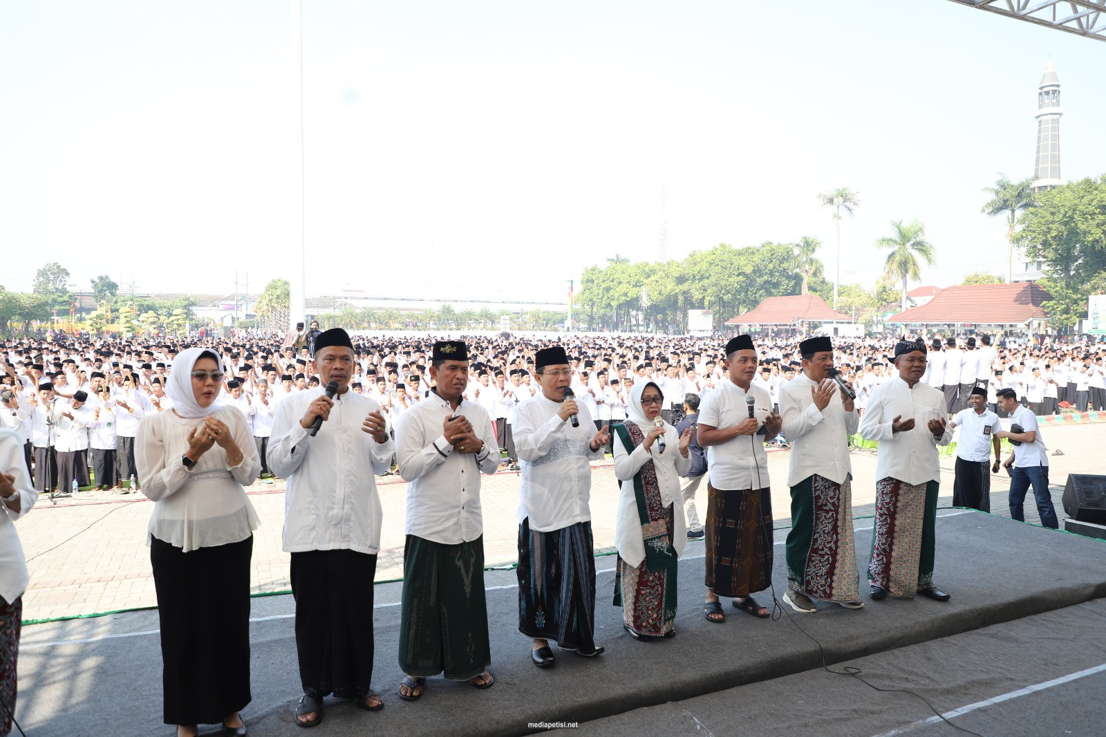 Para peserta dengan memakai sarung dan kopiah telah siap menyukseskan event massal ini, di beberapa tempat di 21 Kecamatan melalui zoom, dengan pusat kegiatan di Alun-Alun Jombang. Sementara para ASN lingkup Pemkab Jombang juga mengikuti kegiatan tersebut di Lapangan Pemkab Jombang. Sabtu (29/7/2023)