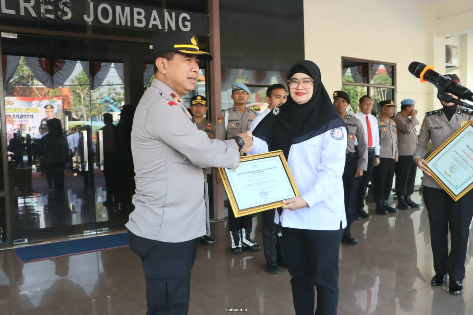 Caption Foto : Waka Polres Jombang saat menerima penghargaan dari TRC PPAI