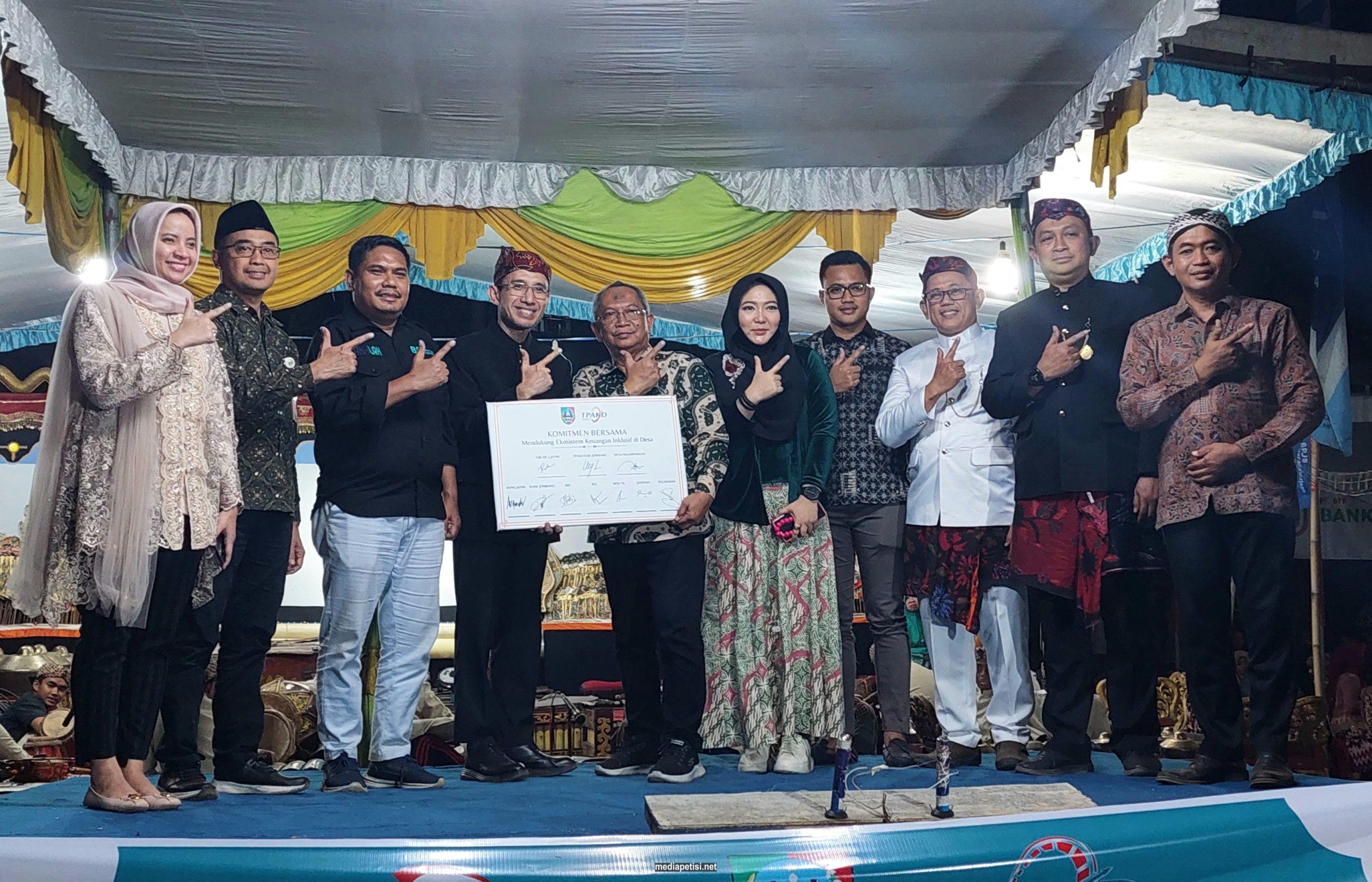 Caption Foto : Pimpinan Lembaga Jasa Keuangan saat menunjukkan komitmen bersama EKI oleh Asisten, Direktur OJK, Kepala Desa dan Pimpinan Bank Jatim, Bank Jombang, BRI, BSI, BPJS Ketenagakerjaan, Jasindo dan Pegadaian