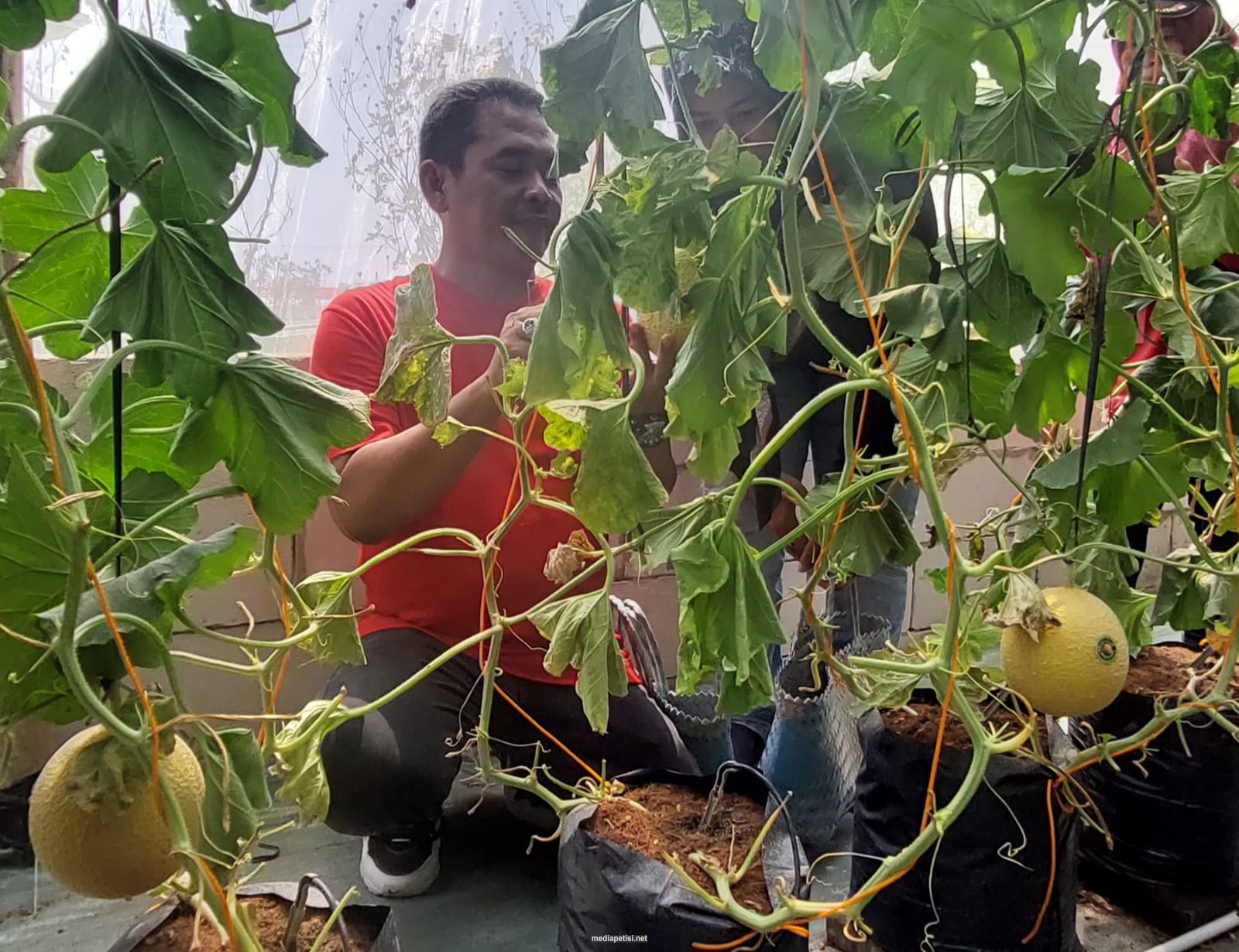 Caption Foto : Wabup Sumrambah saat petik melon di Green House Lestari Farm BUMDes Enggal Makmur Japanan