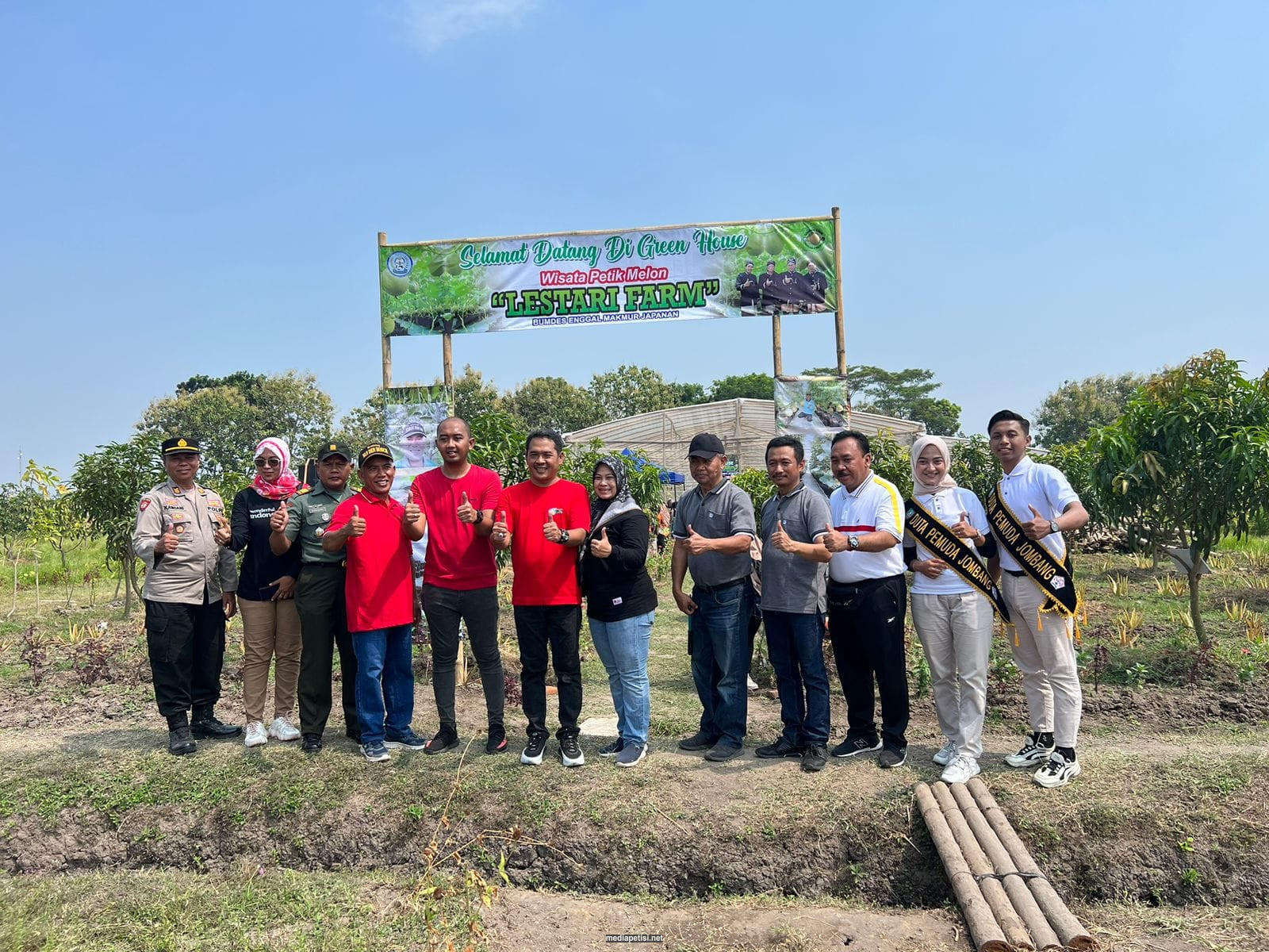 mediapetisi.net – Bertepatan dengan memperingati HUT Kemerdekaan RI ke 78, Potensi wisata Desa Japanan launching wisata petik buah Melon kualitas premium di Green House “Lestari Farm” BUMDes Enggal Makmur Japanan. Dihadiri Wakil Bupati Jombang Sumrambah, Kepala Disbudpar Bambang Nurwidjanto, Kepala DPMD Sholahuddin Hadi S, Ketua TP-PKK Wiwin Sumrambah, Caleg DPRD PDIP Adi Artama Putra, Forpimcam, PPL dan Kepala Desa beserta Perangkat Desa. Bertempat di area wisata Desa Japanan Kecamatan Gudo Kabupaten Jombang. Minggu (20/8/2023)