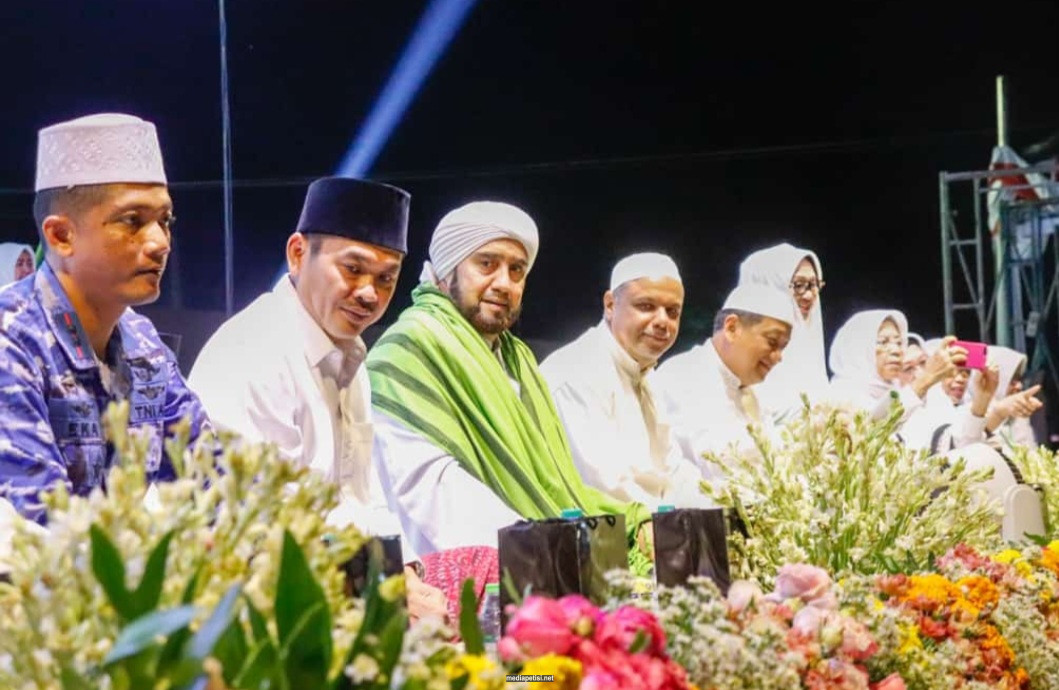 Caption Foto : Didampingi Forkopimda, Habib Syech saat bersholawat di Stadion Jombang