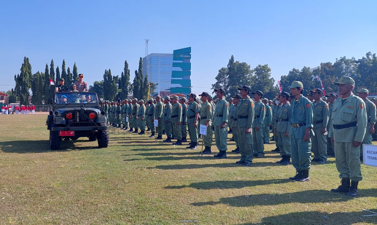 mediapetisi.net – Pemerintah Kabupaten Jombang melalui Satuan Polisi Pamong Praja (Satpol-PP) menggelar Apel Siaga Sauam Limnas (Perlindungan Masyarakat) Kabupaten Jombang dalam rangka Persiapan Pengamanan Pesta Demokrasi tahun 2024 dipimpin langsung oleh Bupati Jombang Hj. Mundjidah Wahab. Dihadiri Wakil Bupati Jombang, Forkopimda, Asisten, Staf Ahli, Kepala OPD, Kabag. dan Camat serta diikuti Linmas dari 302 Desa dan 4 kelurahan. Bertempat di Stadion Jombang. Jum’at (22/9/2023)