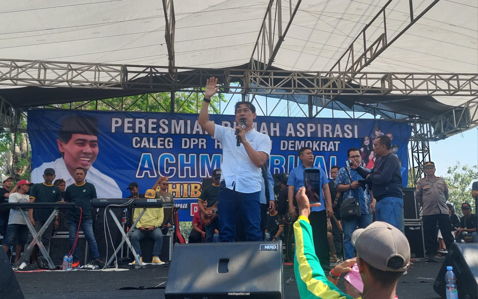 Calon legislatif (Caleg) DPR RI Partai Demokrat H. Achmad Rifai mengajak semua masyarakat yang hadir dalam peresmian Rumah Inspirasi bersholawat sebelum menikmati hiburan rakyat.