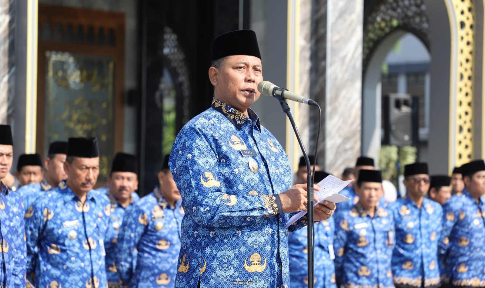 Caption Foto : Pj Bupati Jombang Sugiat saat memimpin langsung Apel Kerja Pegawai lingkup Pemkab Jombang