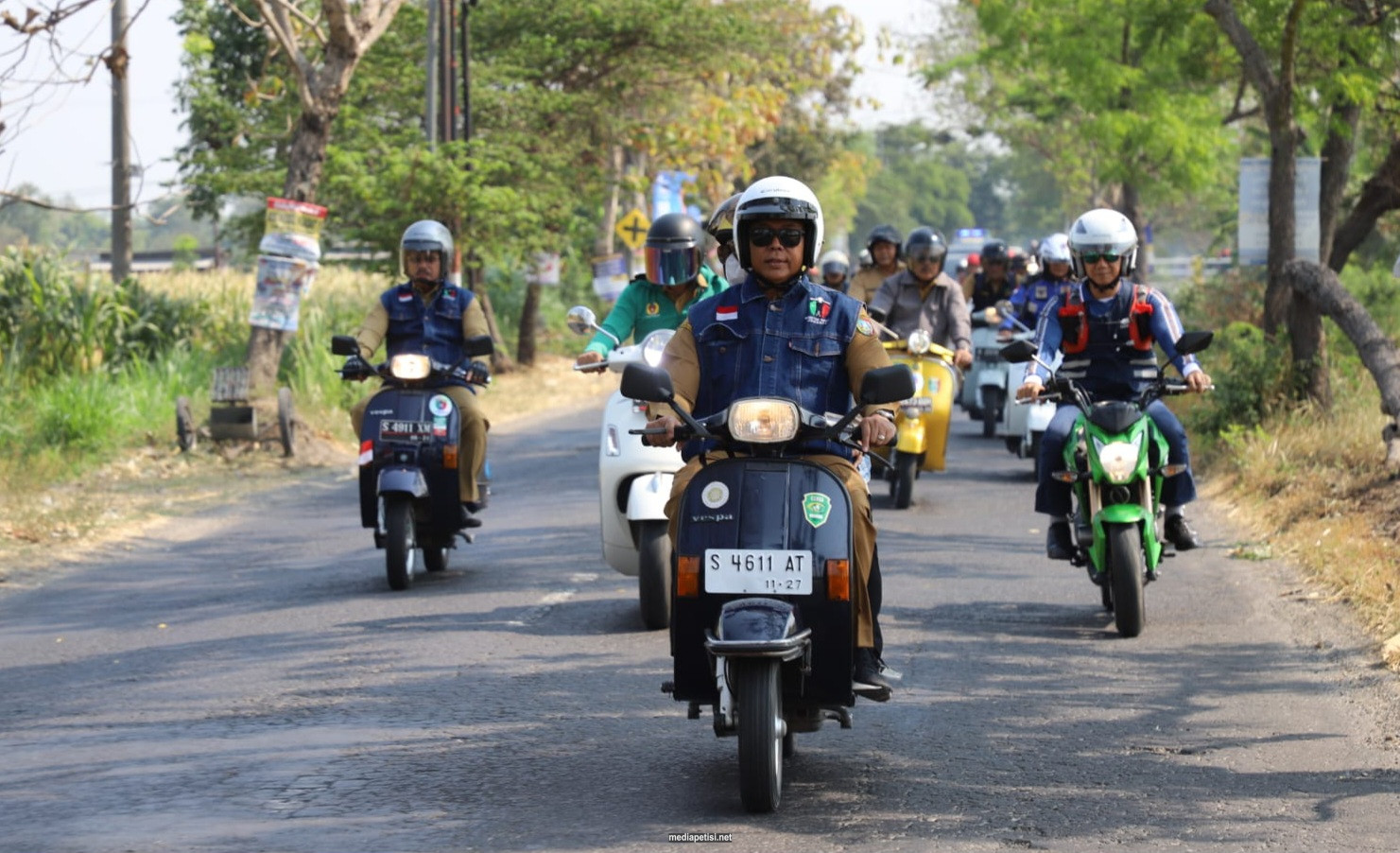 mediapetisi.net – Dengan mengendarai Vespa, Pj Bupati Jombang Sugiat didampingi istri, Sekretaris Daerah, Asisten 1, Staf Ahli dan Kepala OPD mengecek Jalan rusak yang sudah selesai diperbaiki di Kasemen Gudo. Senin (23/10/2023)