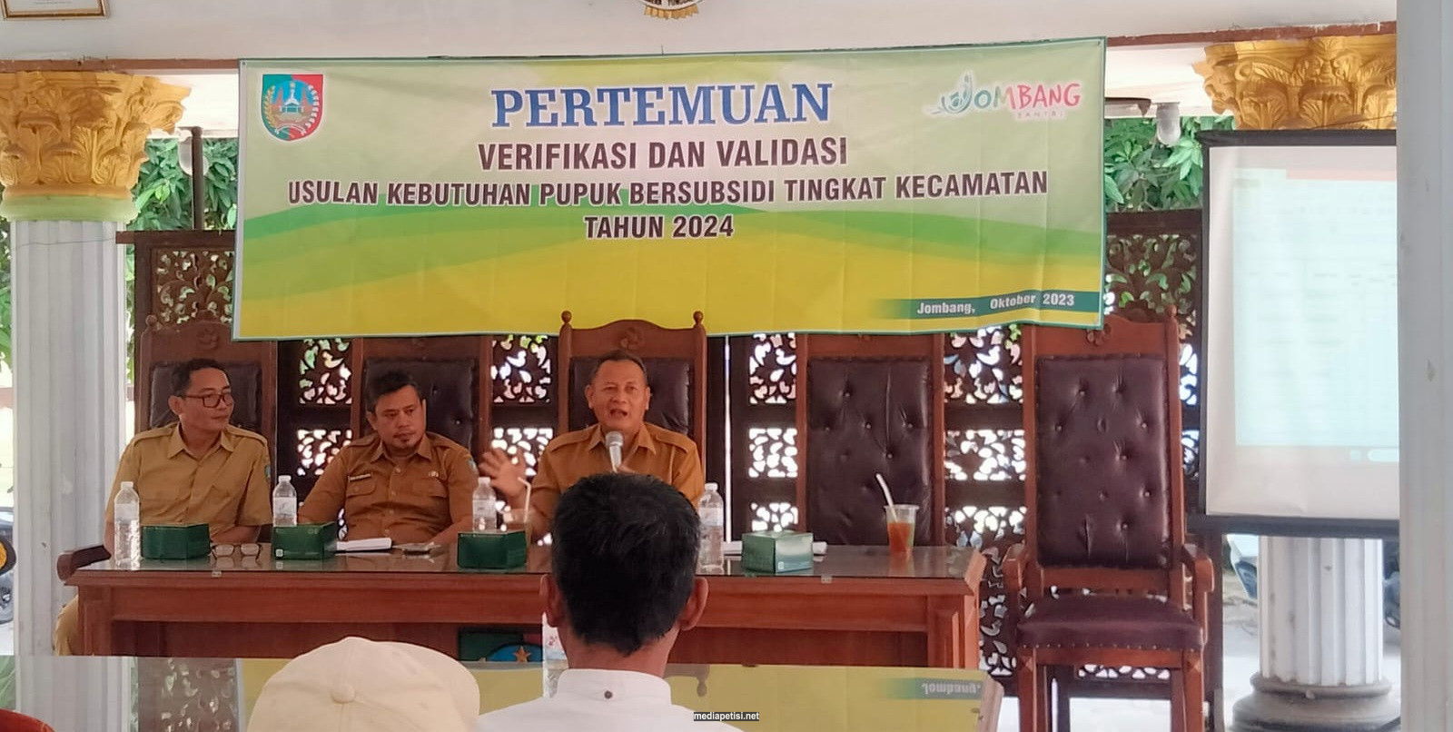 mediapetisi.net – Dinas Pertanian Kabupaten Jombang melaksanakan sosialisasi pupuk bersubsidi dengan verifikasi dan validasi usulan kebutuhan pupuk bersubsidi tingkat kecamatan 2024. Dihadiri Kabid Produksi Tanaman Pangan Perkebunan dan Hortikultura, Camat, Perwakilan kios pupuk, Kepala Desa dan Poktan se Kecamatan Jombang. Bertempat di Pendopo Kecamatan Jombang. Selasa (24/10/2023)