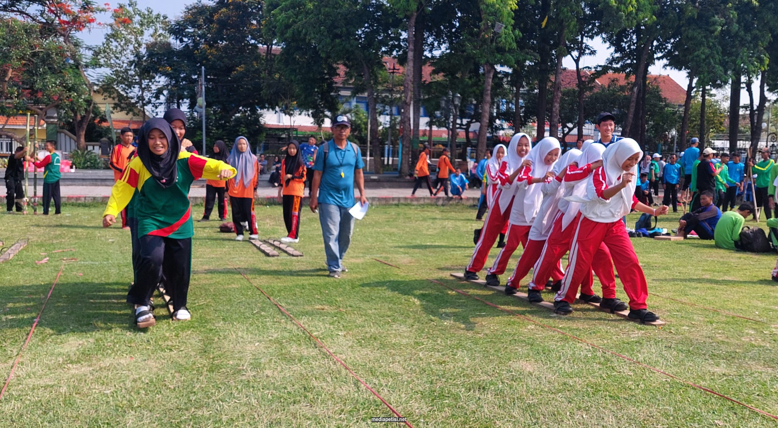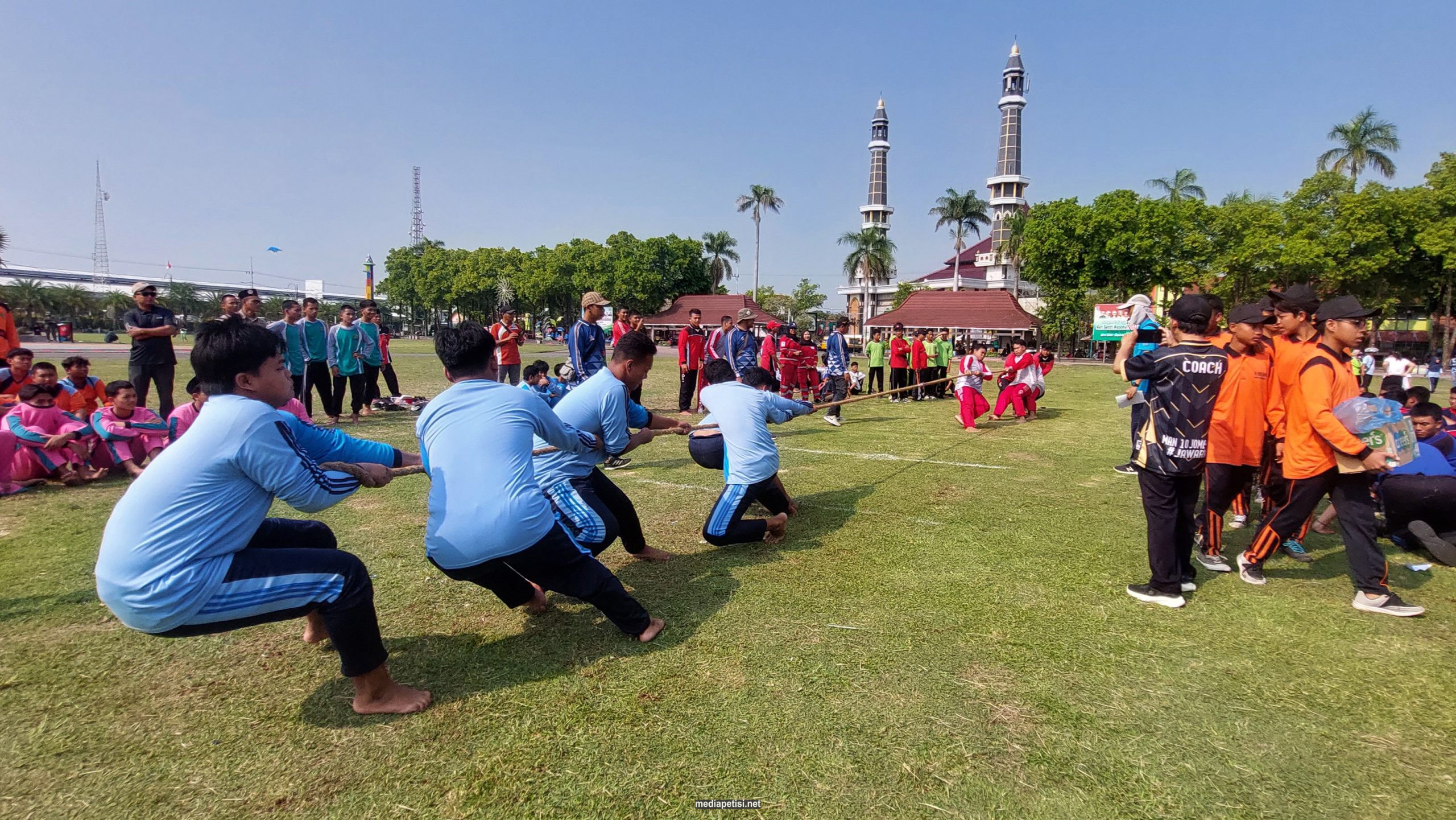Caption Foto : Para siswa saat mengikuti lomba tradisional tarik tambang