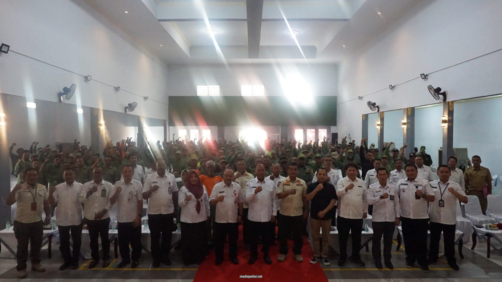 Pj Bupati Sugiat berpesan kepada Satlinmas untuk memberikan pelayanan yang cepat dan tepat atas segala ancaman, gangguan, halangan, tantangan terkait ketertiban umum dan ketentraman yang terjadi di tengah masyarakat. Selain itu, selalu peka terhadap segala bentuk perubahan-perubahan sosial yang terjadi di masyarakat. Sehingga kita dapat melakukan langkah-langkah antisipatif untuk menghindari dampak yang lebih besar.