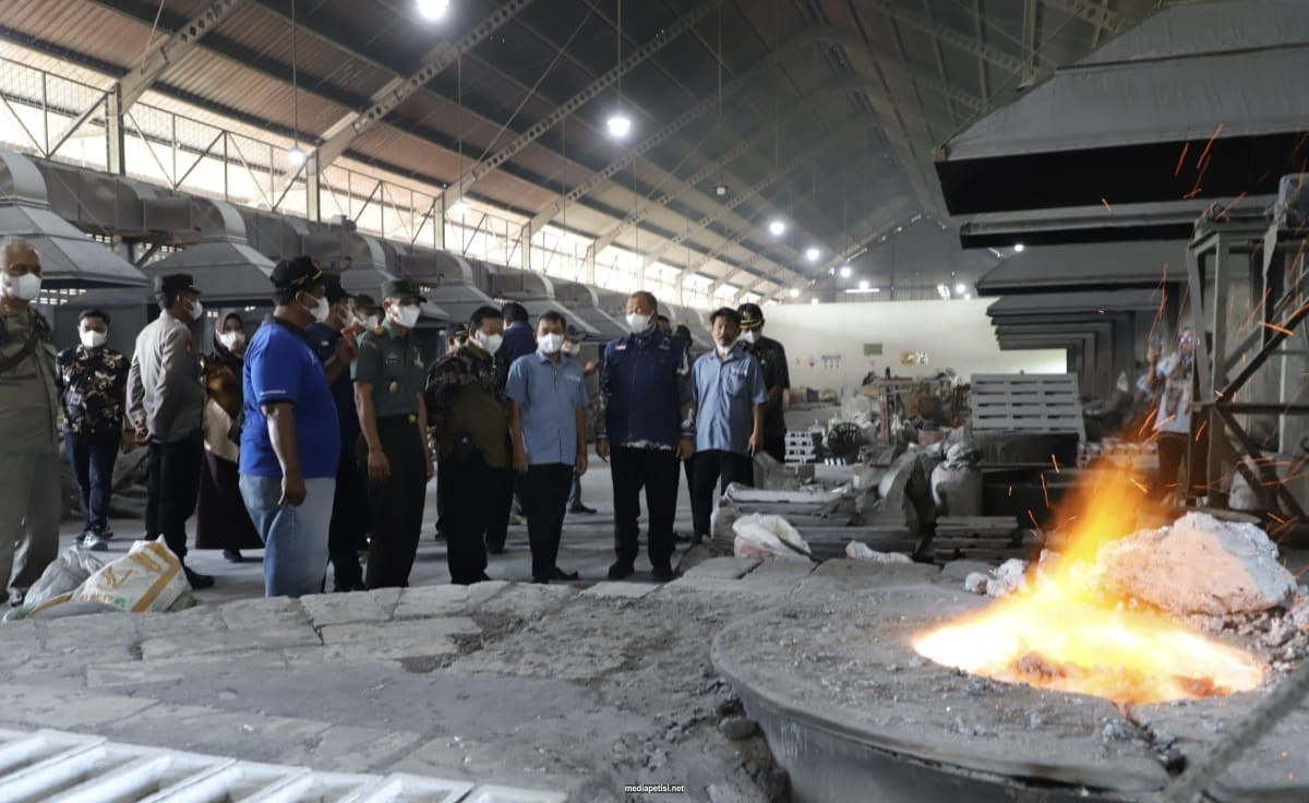 Sampai lokasi, Pj. Bupati Sugiat melakukan peninjauan langsung proses produksi Slag Aluminium yang dilakukan oleh para pelaku usaha. Kemudian memberikan beberapa arahan kepada para pelaku usaha IKM Slag Aluminium. Agar para pelaku usaha dapat meningkatkan produktivitasnya, sehingga dapat menghasilkan produk yang berkualitas dan berdaya saing.