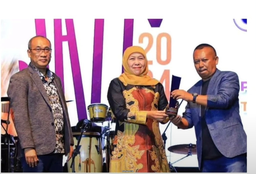 mediapetisi.net – Gubernur Jawa Timur Khofifah Indar Parawansa menerima penghargaan PWI Jatim Award sebagai Tokoh Nasional Peduli Ekonomi Kerakyatan dari Persatuan Wartawan Indonesia (PWI) Jawa Timur di Gedung Kesenian Cak Durasim Surabaya..