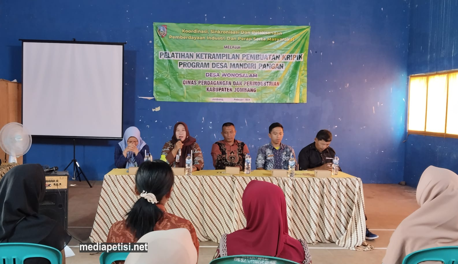 mediapetisi.net – Pemerintah Kabupaten Jombang melalui Dinas Perdagangan dan Perindustrian (Disdagrin) memberi pelatihan ketrampilan pembuatan keripik program desa mandiri pangan bagi 25 IKM Wonosalam Desa Mandiri Pangan yang dibuka Kepala Disdagrin Suwignyo yang diwakili oleh Kepala Bidang Perindustrian Isnainiyah. Dihadiri Perwakilan Camat, Kepala Desa Wonosalam dan Nara Sumber. Bertempat di Balai Desa Kecamatan Wonosalam Kabupaten Jombang. kamis (22/2/2024)