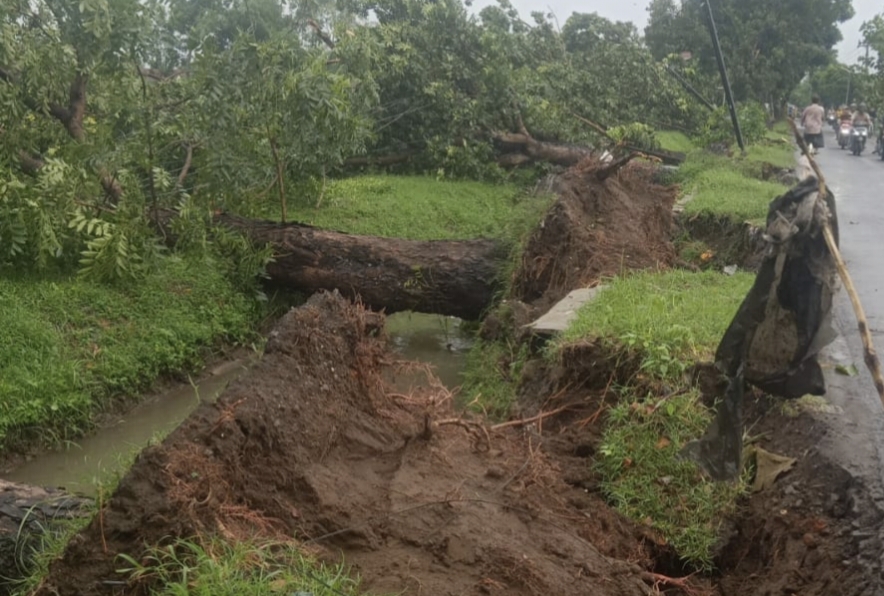 Setelah itu, sambung Lukman, hujan disertai angin kencang, mulai menerjang pepohonan hingga akhirnya beberapa pohon ambruk. Pohon-pohon di pinggir jalan itu yang paling parah, ada 5 sampai 7 pohon ambruk dan akarnya merusak bahu jalan.