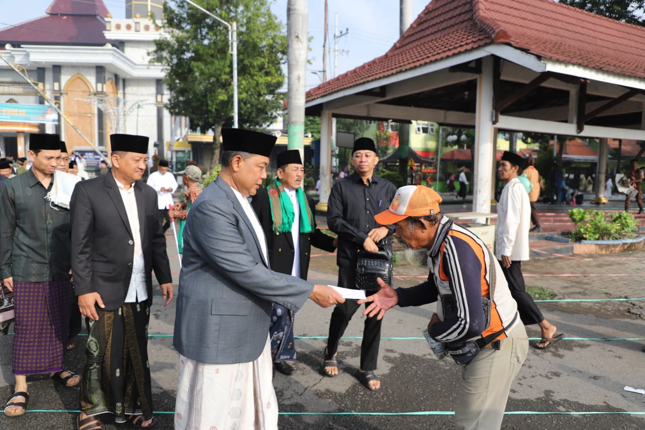 “Dengan takbir dan tahmid serta kesadaran untuk saling memaafkan, mari kita lepaskan bulan Ramadhan 1445H. Semoga kita semua termasuk dalam golongan orang-orang yang berhasil meraih kemuliaan bulan suci Ramadhan dan dapat kembali kepada kesucian fitrah, ” kata Pj Bupati Sugiat.