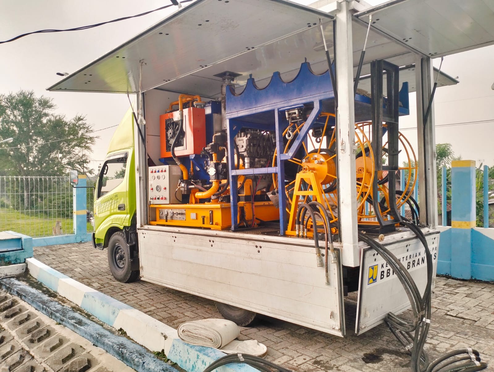 Sedangkan saat ini pompa air dari PU SDA Provinsi telah tiba di Dam Jatimlerek dengan kapasitas 500 lt/det. Hari ini akan dikirim lagi 1 buah pompa air dari PU SDA Provinsi dengan kapasitas 300 lt/det. Untuk pompa air dari BBWS dengan kapasitas 400 lt/det akan trial sambil menunggu kisdam di intake Jatimlerek.