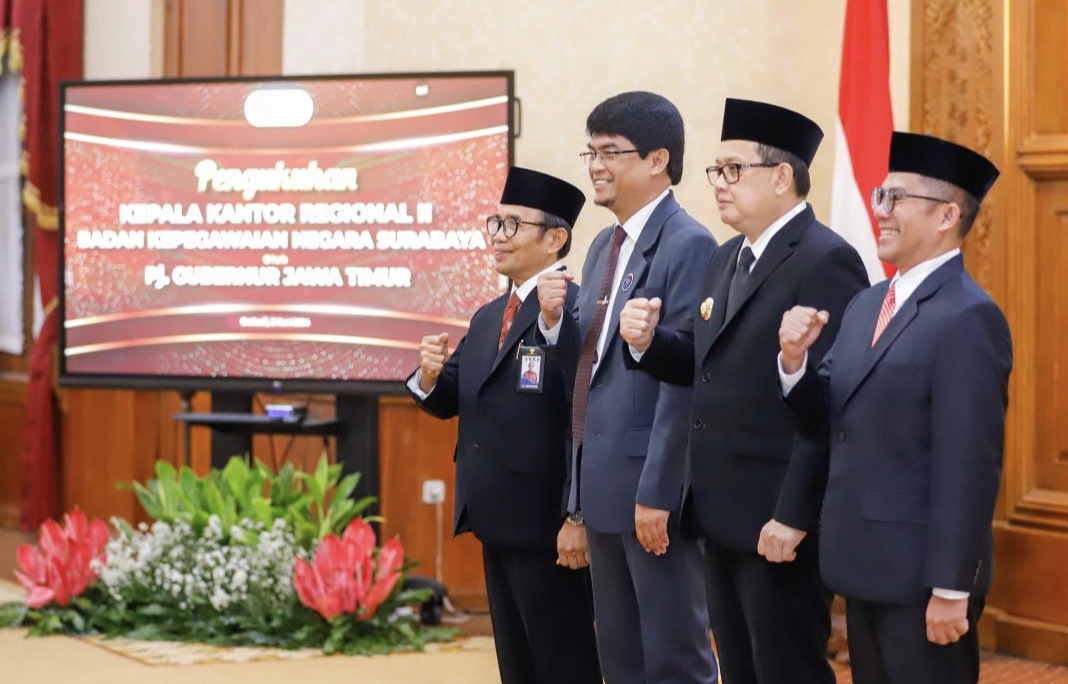 mediapetisi.net – Penjabat (Pj) Gubernur Jawa Timur Adhy Karyono mengukuhkan A. Darmuji sebagai Kepala Kantor Regional (Kanreg) Badan Kepegawaian Negara (BKN) II Surabaya berdasarkan Surat Keputusan Kepala BKN nomor 178 tahun 2024 di Gedung Negara Grahadi, Surabaya.