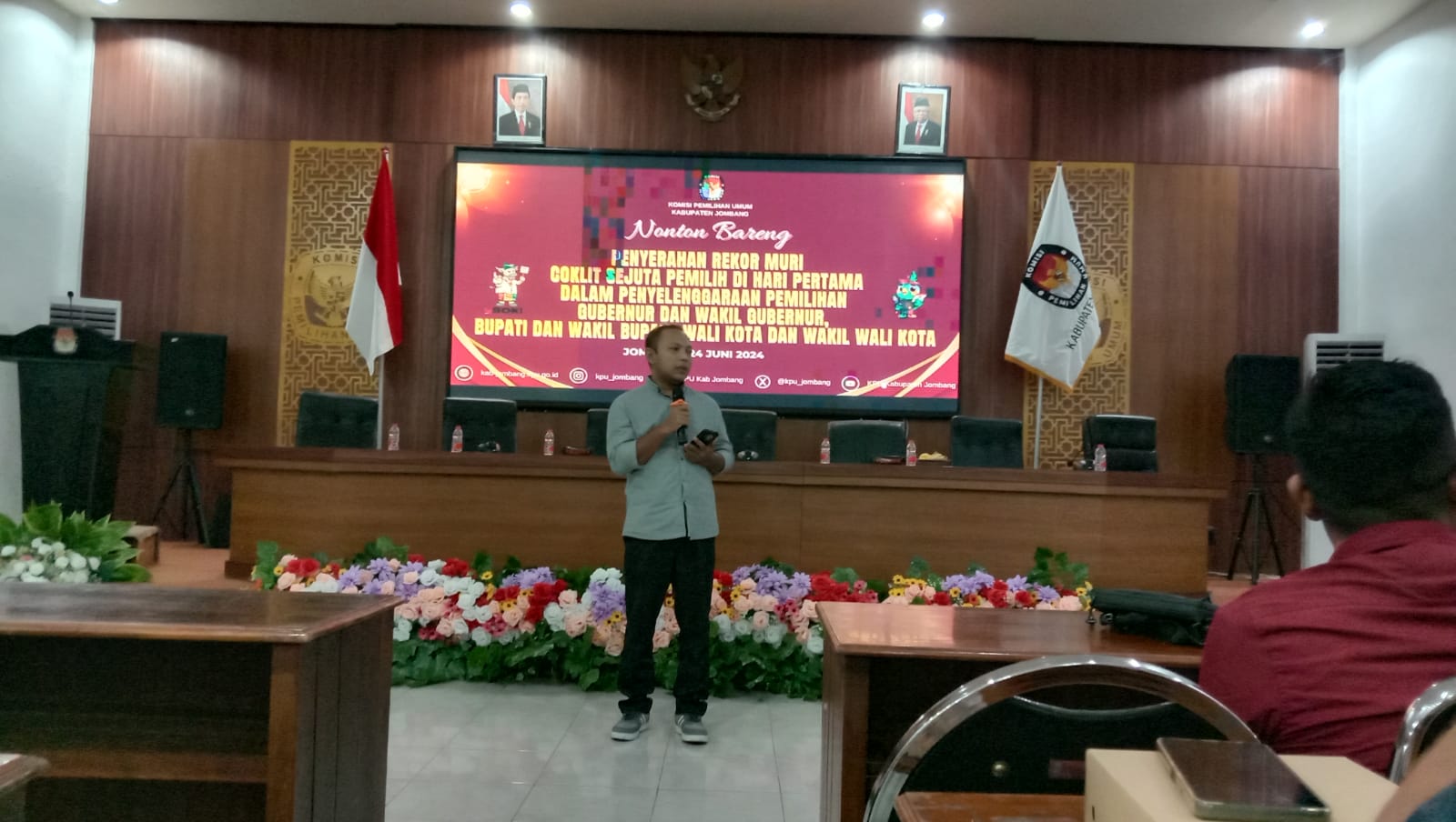 Sementara itu, Ketua KPU Jombang Ahmad Udi Masjkur menyampaikan, nonton bareng penyerahan rekor muri Coklit (pencocokan dan penelitian) sejuta pemilih, dilakukan coklit menunjukkan KPU RI dalam penyelenggaraan kepala daerah mampu menunjukkan wujud penyelenggaraan sesuai waktu dan jadwal tahapan.