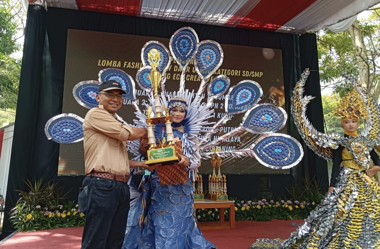 Caption Foto : Kepala Dinas Lingkungan Hidup Kabupaten Jombang Miftahul Ulum saat menyerahkan penghargaan kepada juara 1 Fashion show