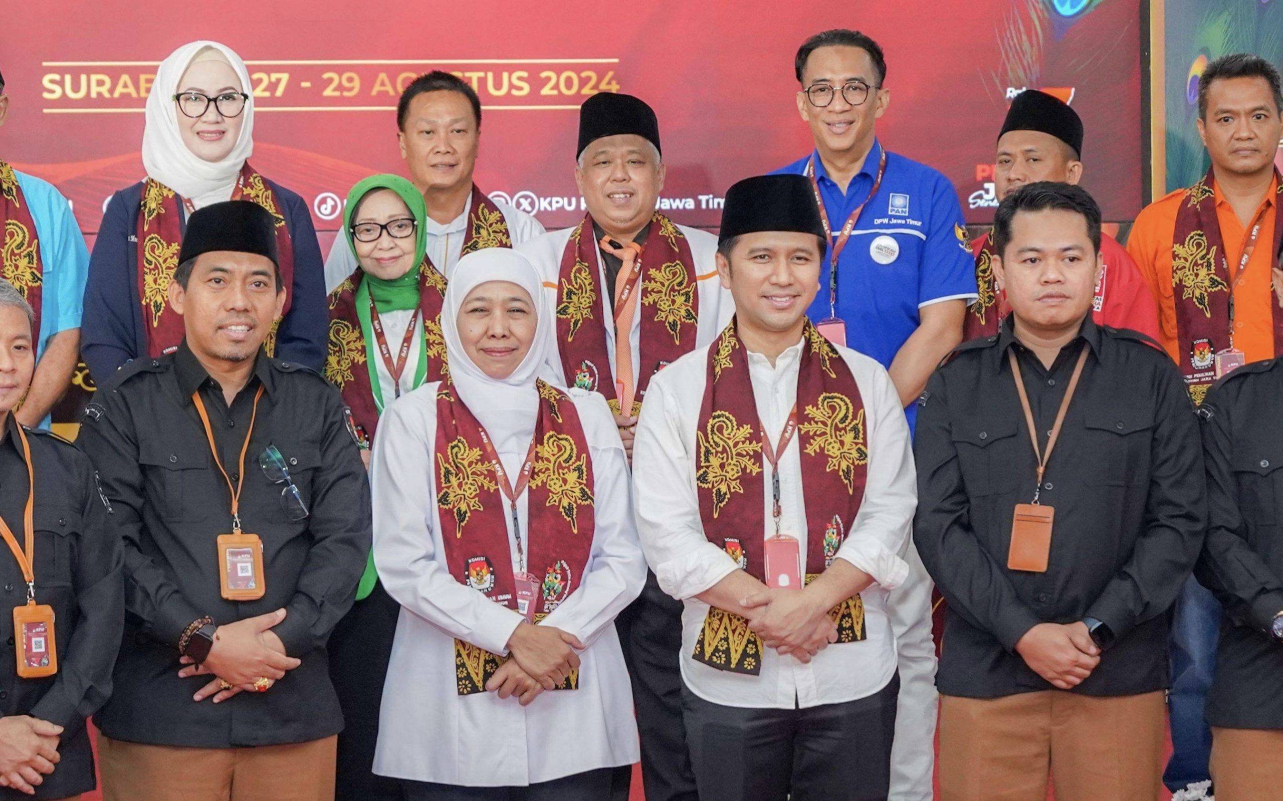 “Kami menerima dokumen pendaftaran dari partai pengusul untuk mengusung pasangan calon yang diusulkan Khofifah-Emil. Alhamdulillah, hasil laporan dari tim verifikator yang sudah kami tetapkan, dokumen pasangan calon Khofifah-Emil kami nyatakan lengkap dan diterima,” tandasnya. (yn)
