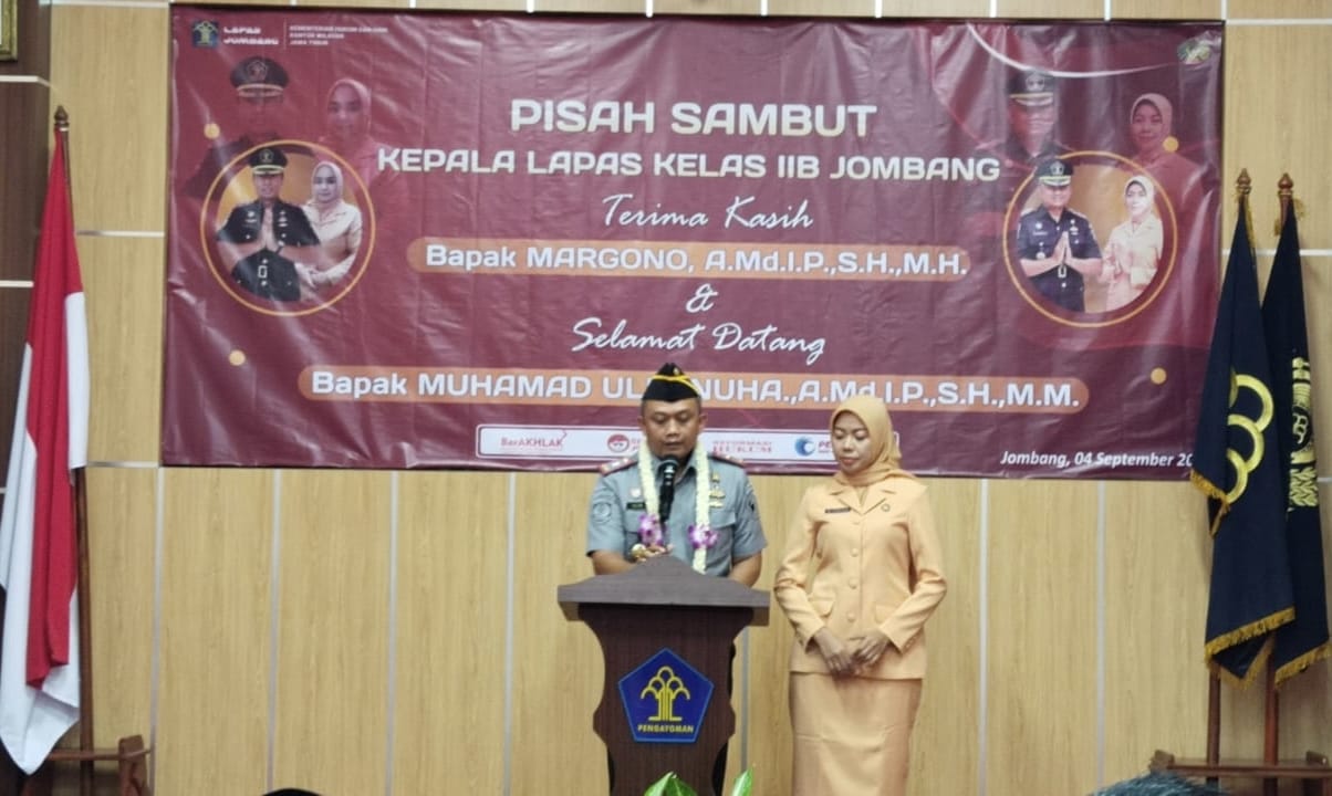 Pisah sambut kepala Lapas kelas IIB Jombang dari Margono, AMd. I. P,.SH.,MH kepada Muhammad Ulin Nuha., AMd. I. P., SH., MM awal yang baik untuk meningkatkan sinergitas antar lintas aparat penegak hukum dan komponen masyarakat dalam upaya menjadikan Lembaga Pemasyarakatan sebagai tempat prmbinaan dan pendidikan bagi warga binaan untuk kembali menjadi lebih baik dan tidak mengulangi perbuatan yang melanggar hukum