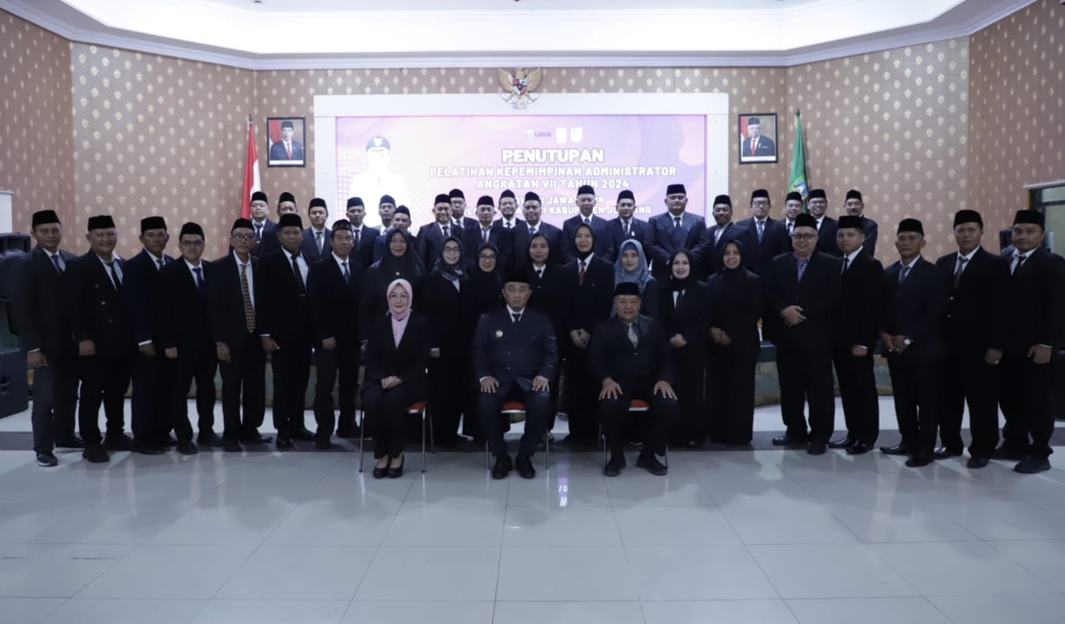 Pj Bupati Jombang Teguh Narutomo menyampaikan selamat sekaligus apresiasi dan motivasi kepada seluruh peserta pelatihan Kepemimpinan Administrator Angkatan VII Tahun 2024 yang telah menyelesaikan tugasnya dengan baik.