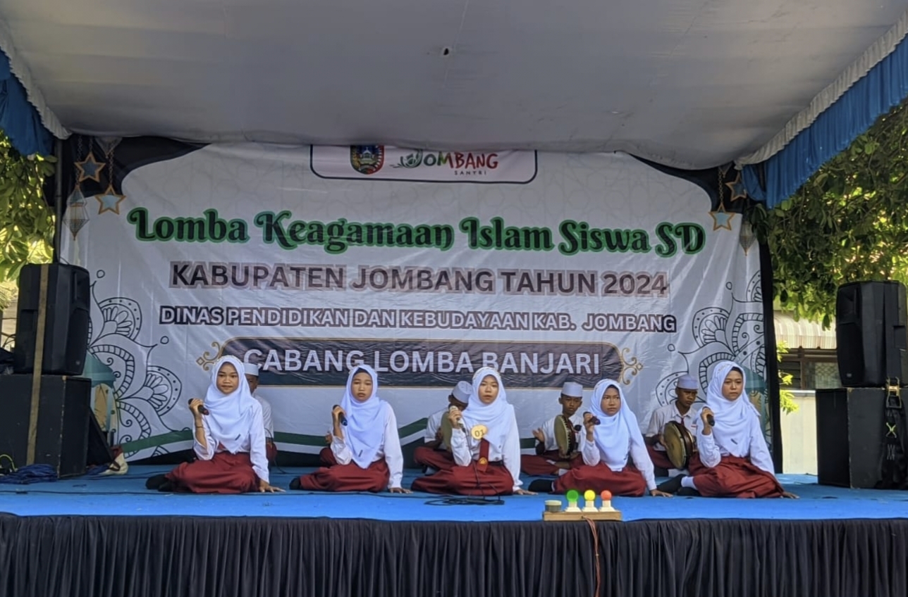 mediapetisi.net – Dinas Pendidikan dan Kebudayaan (Disdikbud) Kabupaten Jombang melalui Bidang Pembinaan Sekolah Dasar (SD) menggelar Lomba Keagamaan Islam Siswa SD Tahun 2024. Sebanyak 7 cabang lomba dilaksanakan secara serentak di Lingkungan Disdikbud Jombang, mulai lomba Banjari, Tahfidz Al Qur’an, Baca Kitab Diniyah, Pemilihan Dai Cilik (Pildacil), Tartil Al Qur’an, Qiro’ah dan Kaligrafi. Senin (30/9/2024)
