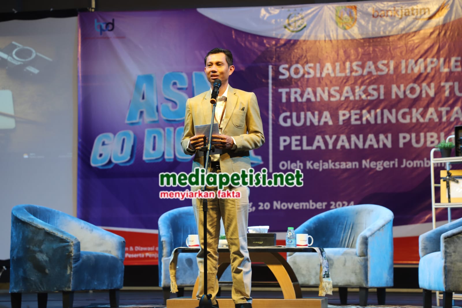 mediapetisi.net – PT Bank Pembangunan Daerah Jawa Timur Tbk (Bank Jatim) gelar Sosialisasi Implementasi Transaksi Non Tunai guna Peningkatan Pelayanan Publik ASN Go Digital. Dihadiri Pj Bupati Jombang Teguh Narutomo, Kepala Kejaksaan Negeri Jombang, Pimpinan dan Karyawan Bank Jatim, Asisten, Staf Ahli, Kepala OPD dan Undangan. Bertempat di Gedung Kesenian Jombang. Rabu (20/11/2024)