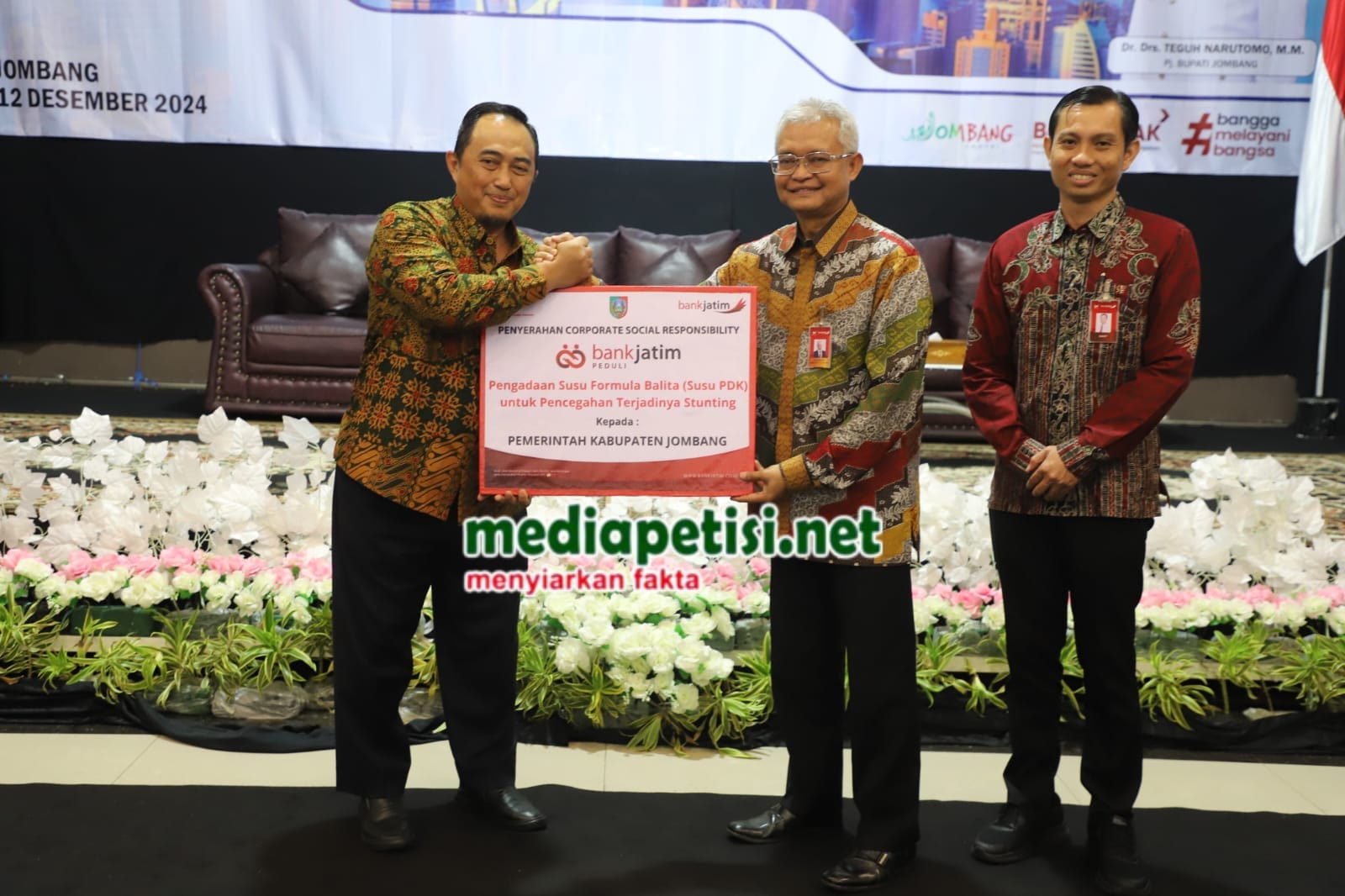 mediapetisi.net – Bank Jatim Cabang Jombang secara resmi menyerahkan bantuan CSR berupa Susu Formula Balita (PDK) untuk pencegahan terjadinya stunting kepada Pemerintah Kabupaten Jombang bersamaan dengan acara Gathering Forum Tanggung Jawab Sosial Lingkungan (TJSL) Kabupaten Jombang tahun 2024. Dihadiri Pj Bupati Jombang, Ketua DPRD, Asisten, Staf Ahli, Kepala OPD, Perbankan, BUMD dan Dunia Usaha. Bertempat di Hotel Fatma Jombang. Kamis, (12/12/2024)