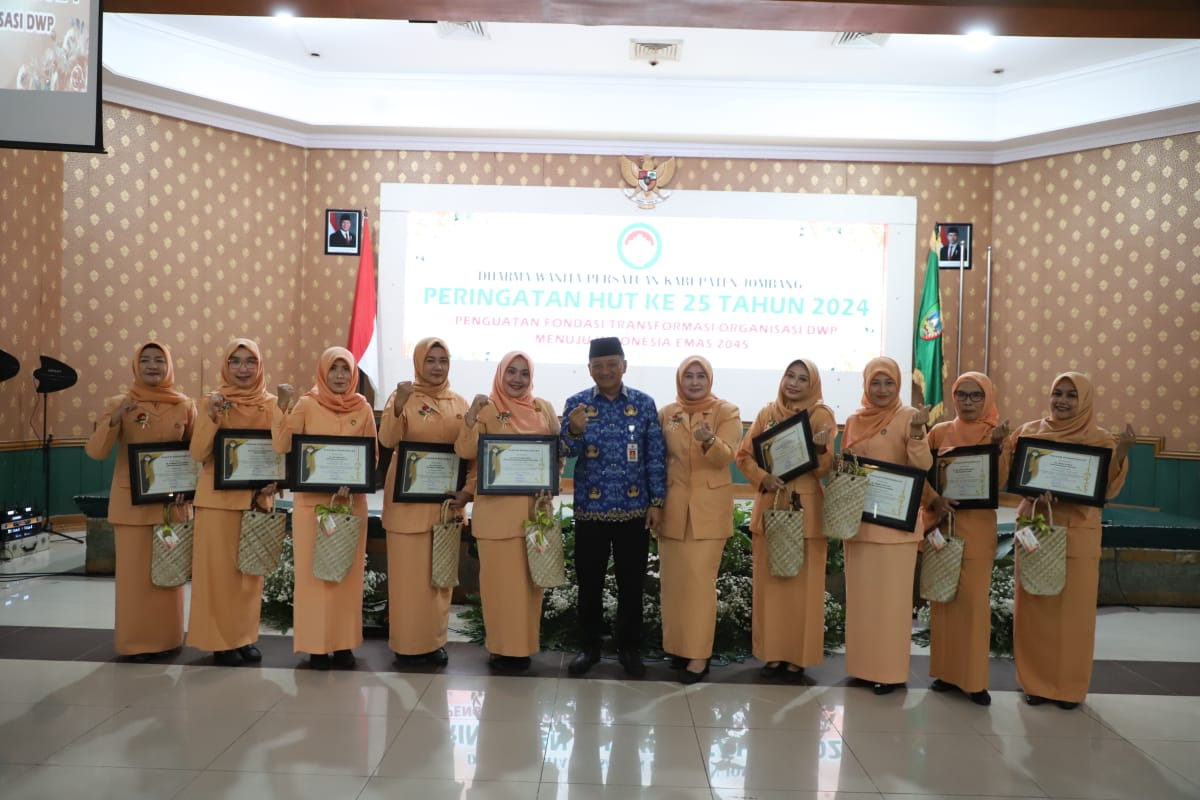 mediapetisi.net – Dharma Wanita Persatuan Kabupaten Jombang merayakan ulang tahunnya yang ke-25 dengan tema “Penguatan Fondasi Transformasi DWP Menuju Indonesia Emas 2045”. Dihadiri Sekda Agus Purnomo, Ketua DWP, Lilik Agus Purnomo, Ketua Organisasi Wanita Forkopimda, dan seluruh pengurus dan anggota Dharma Wanita Persatuan Kabupaten Jombang. Bertempat di Ruang Bung Tomo kantor Pemkab Jombang. Selasa (17/12/2024)