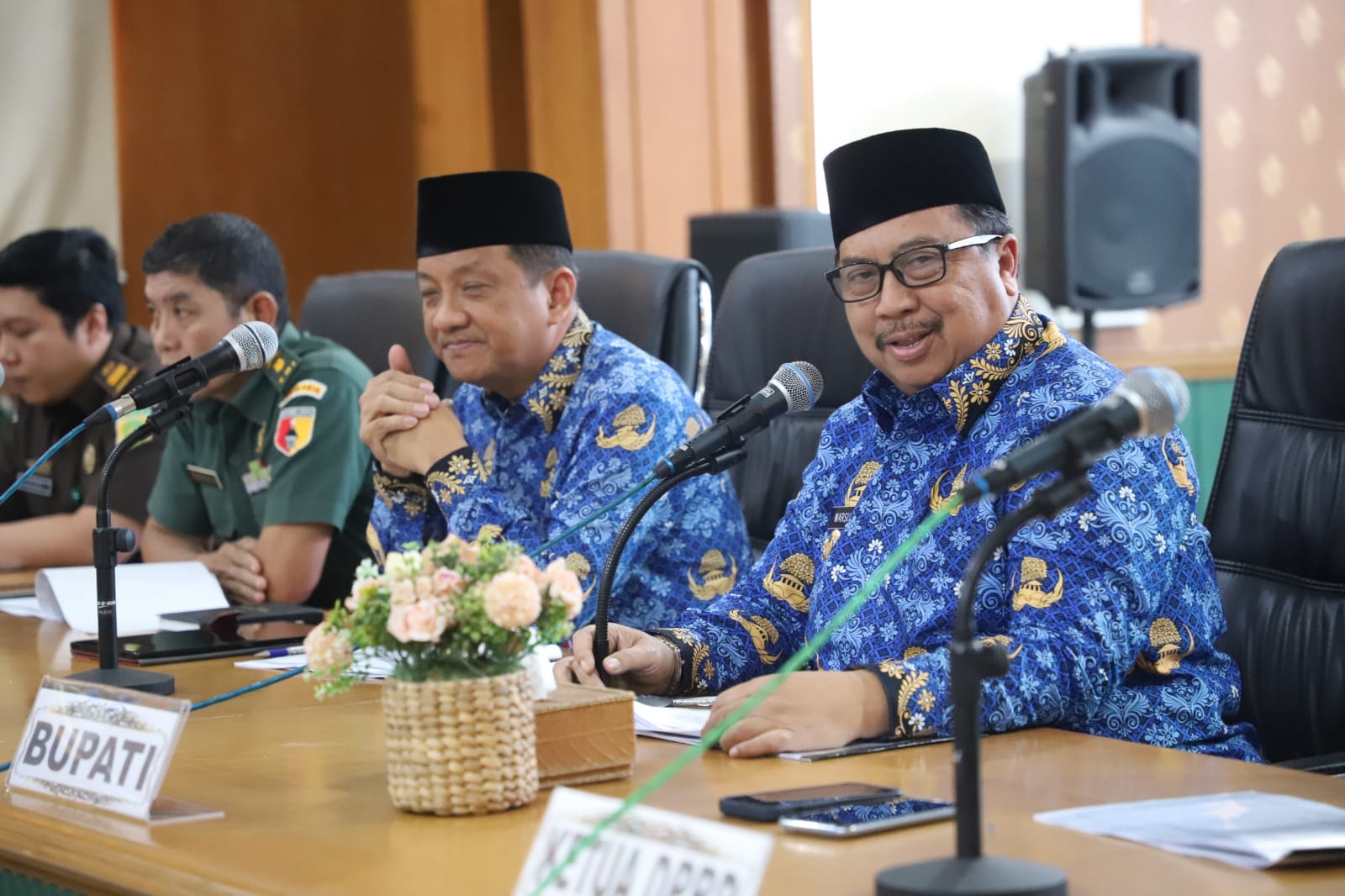 Dihadiri Ketua DPRD Hadi Atmaji, perwakilan Forkopimda Jombang, Sekretaris Daerah Agus Purnomo, Staf Ahli, Asisten, Kepala OPD, Camat, Forkopimcam, tokoh agama, dan tokoh masyarakat. Ketua MUI, Muhammadiyah, PCNU, LDII, FKUB, FKDM, FPK Para Pejabat Bidang Intelijen dan Keamanan Dari TNI, Polri, Kejaksaan, dan Instansi Terkait. Bertempat di ruang Bung Tomo Kantor Prmkab Jombang. Senin (17/3/2025)