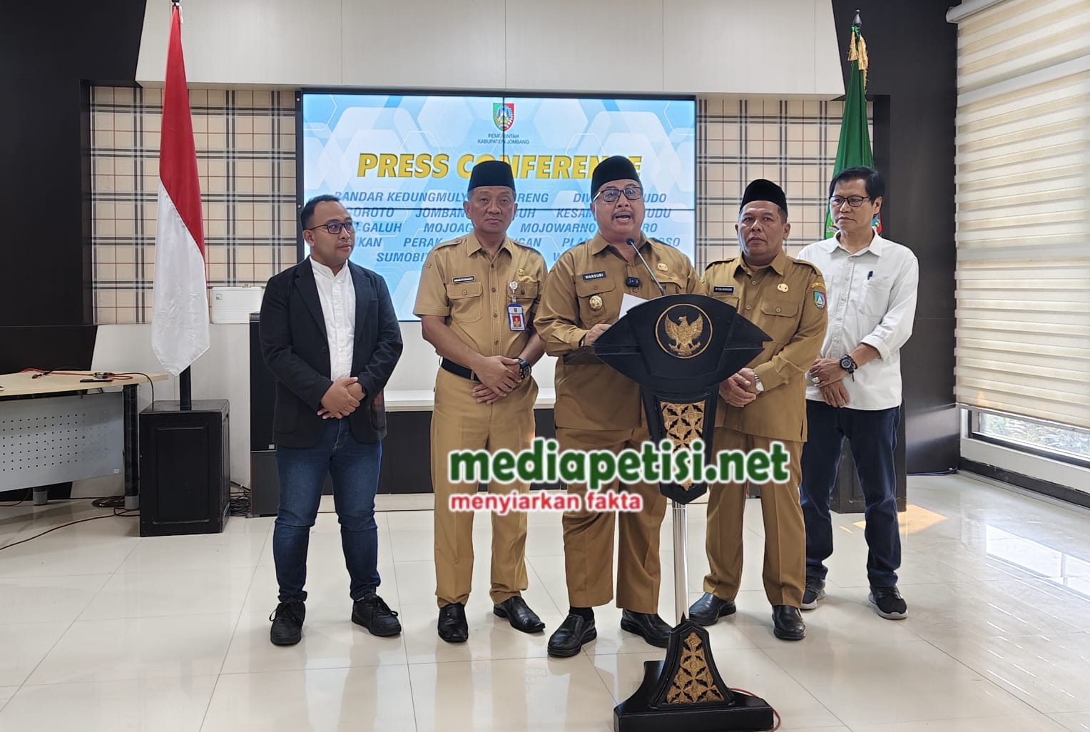 mediapetisi.net – Pemerintah Kabupaten Jombang paparkan percepatan visi dan misi Bupati dan Wakil Bupati Jombang periode 2025-2039 dan program 100 hari kerja, dipimpin langsung Bupati Jombang Warsubi didampingi Wakil Bupati Jombang Salmanudin Yazid dan Sekretaris Daerah Agus Purnomo pada press conference dii Media Center Pemkab Jombang. Selasa (8/4/2025).