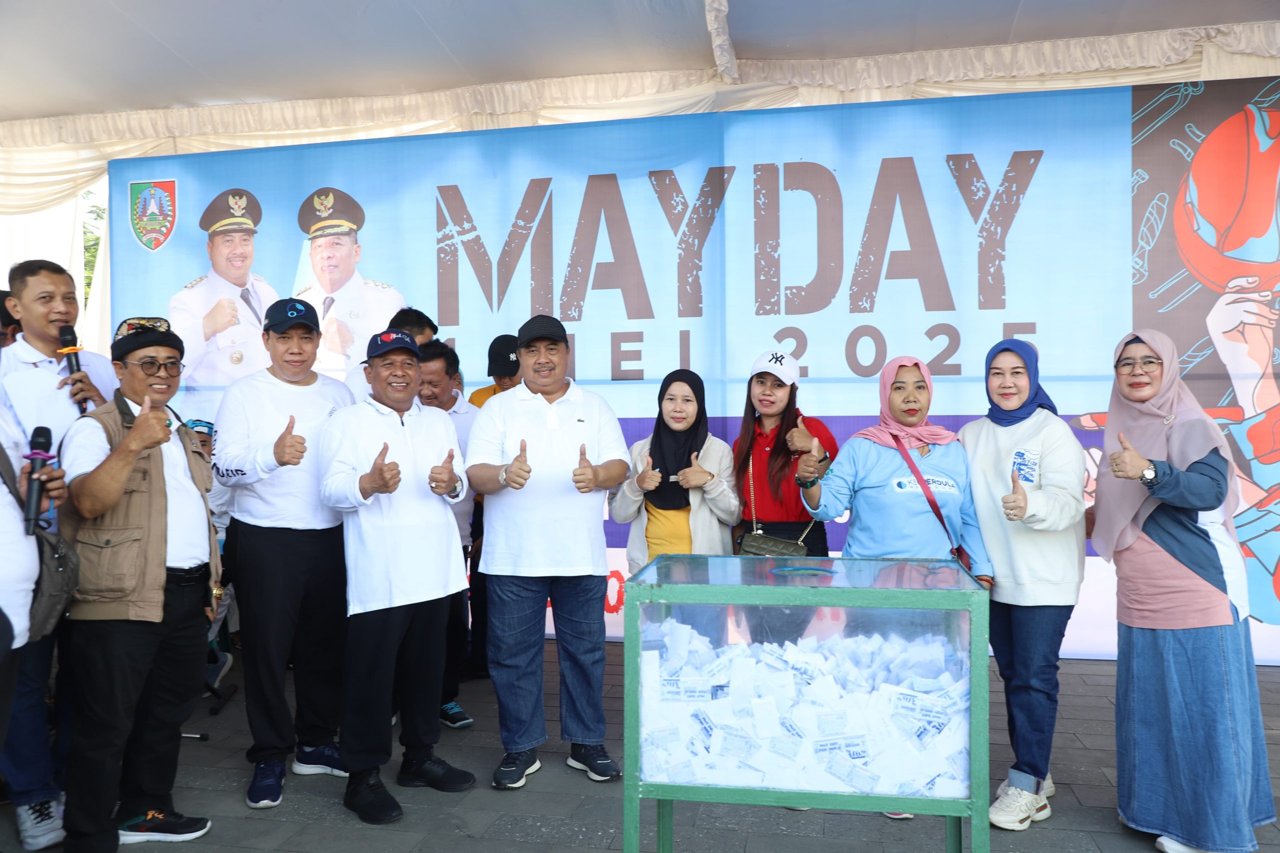 Caption Foto : Bupati Jombang Warsubi saat memberangkatkan Fun Walk May Day 2025