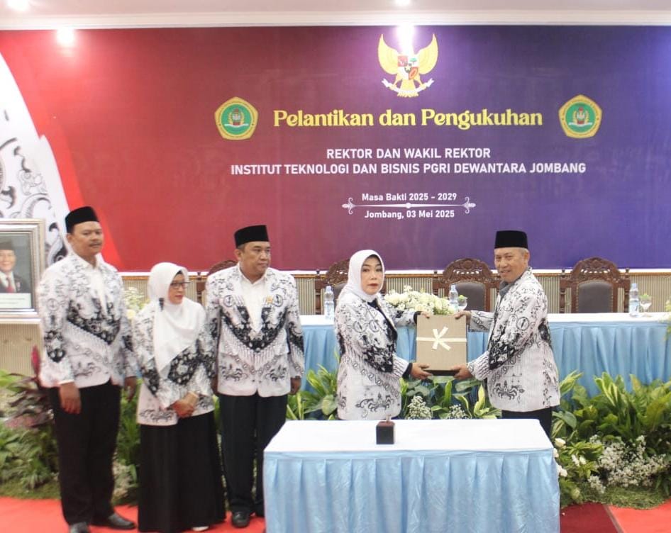 Pengukuhan Rektor ITEBIS PGRI Dewantara Jombang Dr. Dra. Yuniep Mujati Suaidah M.Si dikukuhkan secara langsung oleh Ketua Umum PB PGRI Prof. Dr. Unifah Rosyidi, M.Pd. dan dilantik oleh Ketua PPLP PT PGRI Jombang Drs. Siyono WM M.Pd. Sedangkan pengukuhan Wakil Rektor 1 Dr. Nuri Purwanto, S.ST., MM., Wakil Rektor 2 Dr. Erminati Pancaningrum., S.ST., MSM, Wakil Rektor 3 Dr. Deni Widyo Prasetyo., SE., MM., oleh Ketua PPLP PT PGRI Jombang dan dilantik oleh Rektor ITEBIS PGRI Dewantara Jombang masa jabatan 2025 – 2029.