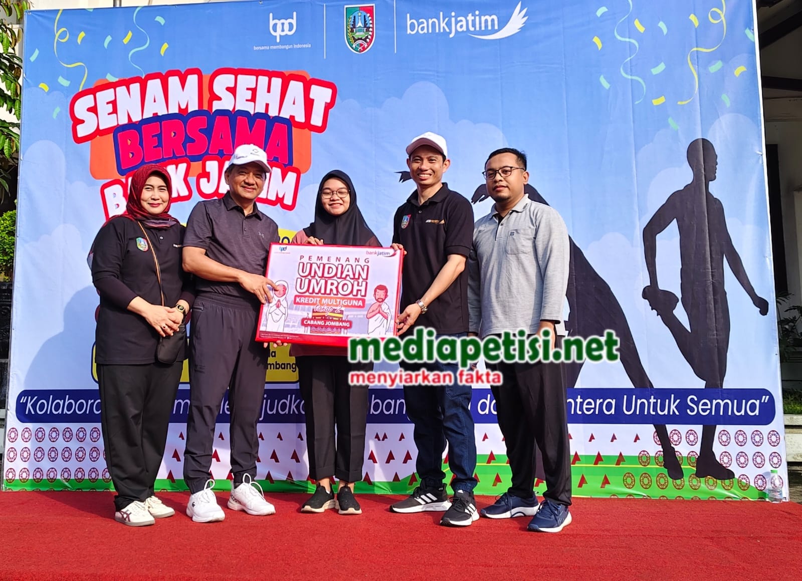 Perlu diketahui, pemenang hadiah umroh promo pengajuan kredit pegawai dari bank jatim yakni Rr. Dwi listyorini pegawai RSUD Jombang. Selain itu, Bank Jatim juga membagikam hadiah maupun doorprice kepada pegawai yang mengikuti senam. Hadiah berupa TV, HP, Dispenser, Sepeda Gunung, Magicom, Kipas Angin, Blender, Setrika dan doorprice lainnya. (yn)