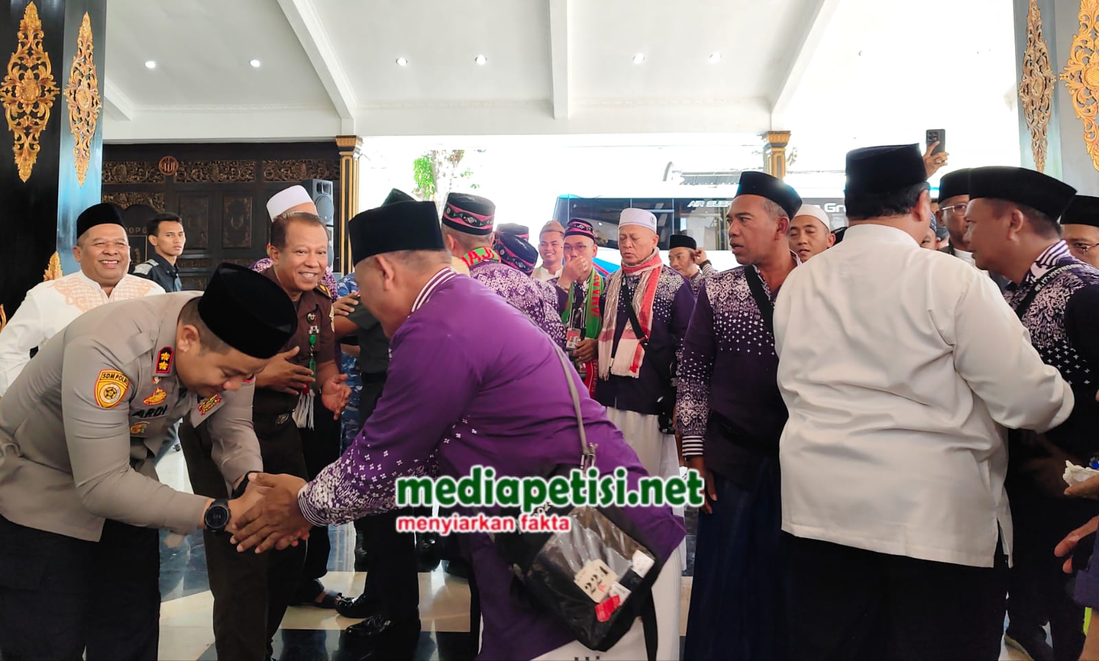 Bupati Warsubi menyampaikan rasa syukur dan kebahagiaannya atas kepulangan seluruh jemaah dalam keadaan sehat walafiat, seraya mendoakan agar mereka semua menjadi haji dan hajjah yang mabrur.