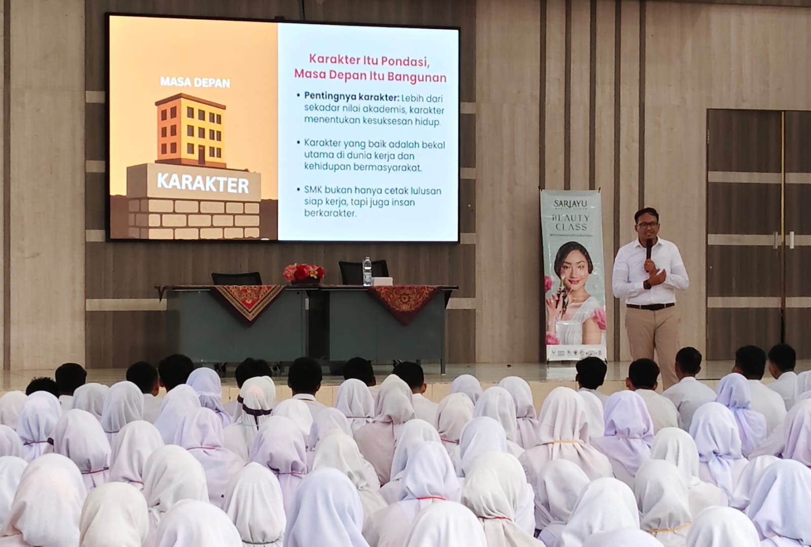 “Karena pentingnya karakter sebagai fondasi utama untuk kesuksesan, baik dalam dunia kerja maupun kehidupan bermasyarakat. Apa lagi SMK tidak hanya bertujuan mencetak lulusan siap kerja, tetapi juga insan yang memiliki karakter baik. Karakter diibaratkan sebagai pondasi bangunan, yang tanpanya, bangunan masa depan yang ingin dibangun akan rapuh,” terang Riska.