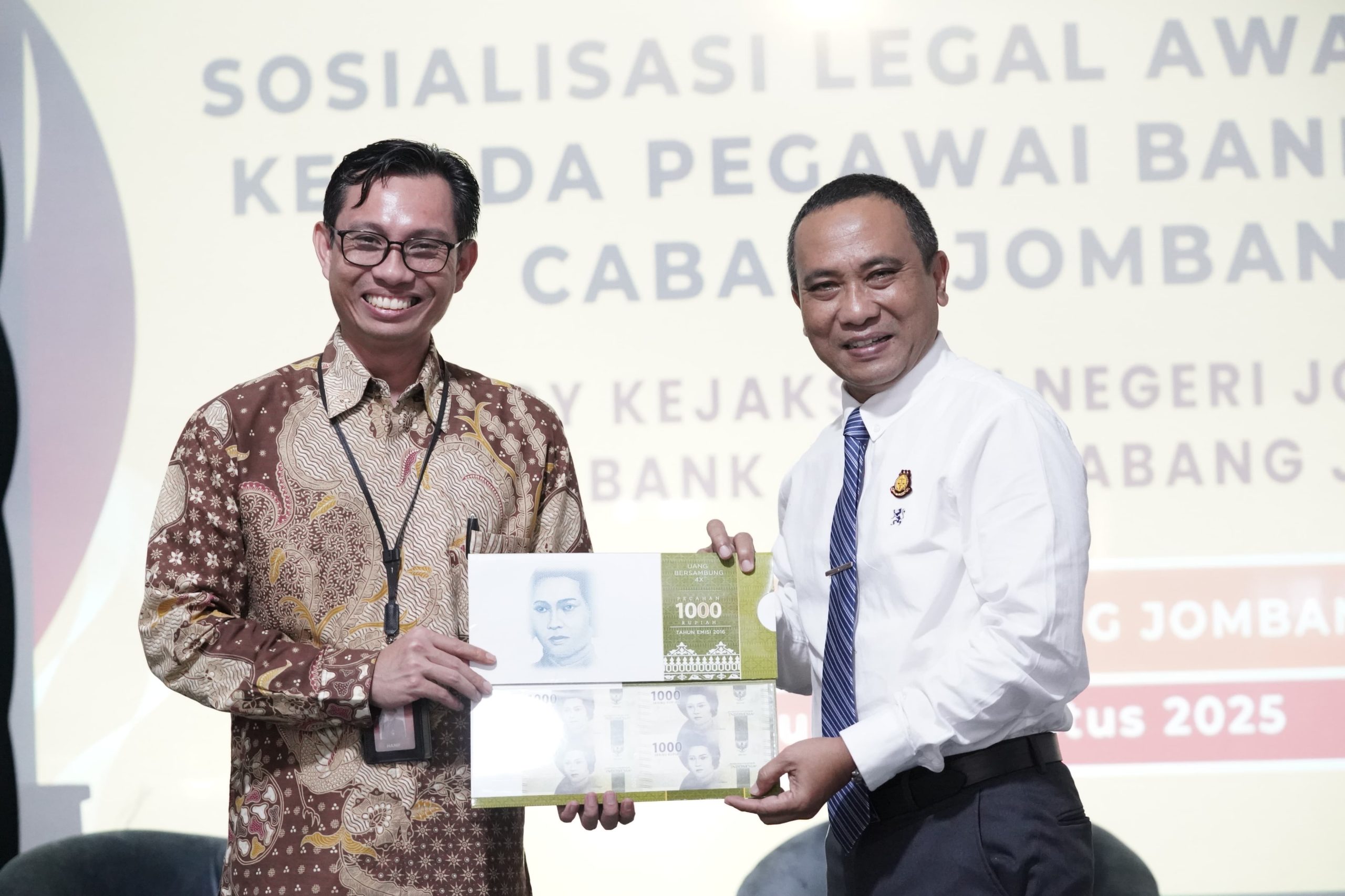 “Sosialisasi Legal Awareness tersebut diikuti seluruh pegawai Bank Jatim Cabang Jombang mulai level staf, penyelia, Pemimpin Bidang Kredit/Operasional dan Pemimpin Cabang Pembantu. Menghadirkan Narasumber Bapak Nul Albar, S.H., M.H selaku Kepala Kejaksaan Negeri Kab. Jombang dan Ibu Kusuma Wardani Raharjo S.H.,M.H selaku Kepala Seksi Perdata dan Tata Usaha Negara beserta jajarannya,” terang Hanif.