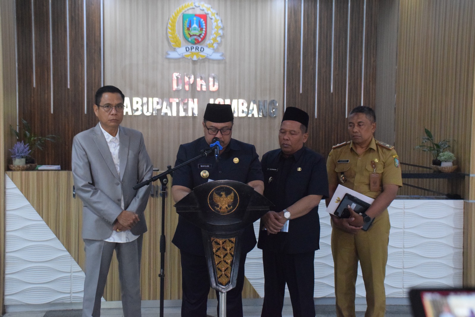 Caption Foto : Bupati Jombang Warsubi didampingi Gus Wabup, Ketua DPRD fan Kepala Bapenda saat mengumumkan kebijakan pajak baru