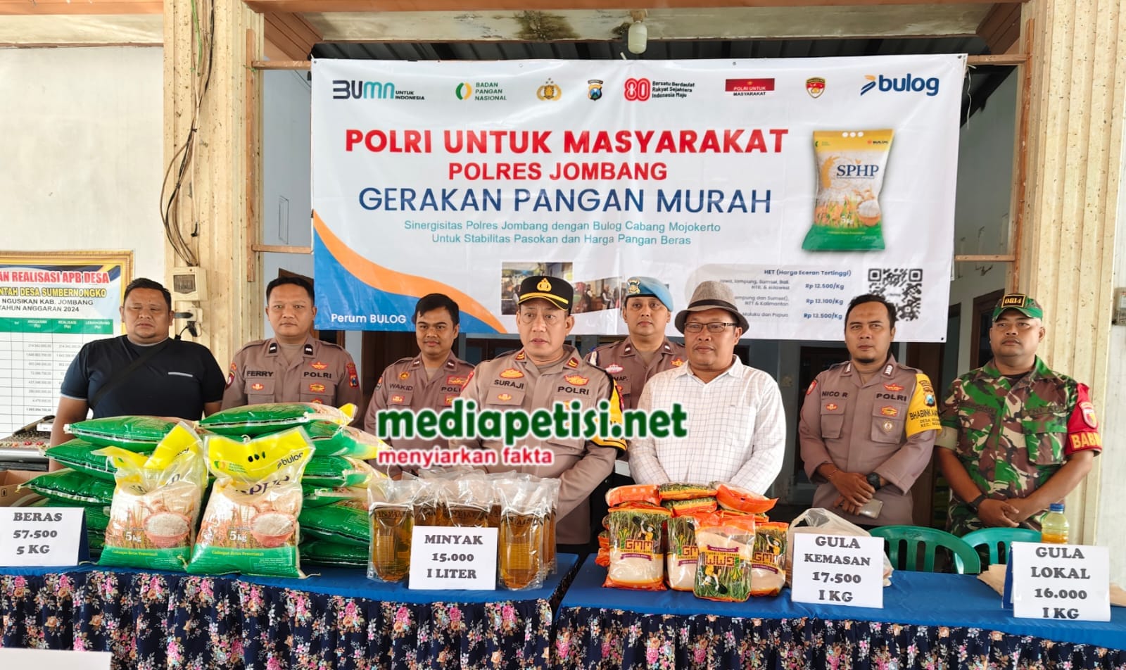 mediapetisi.net – Polres Jombang melalui Polsek Ngusikan menyalurkan pangan murah berupa beras, Gula, minyak goreng curah dan Telur di Balai Sumbernongko Kecamatan Ngusikan Kabupaten Jombang dengan harga murah. Sabtu (16/8/2025)