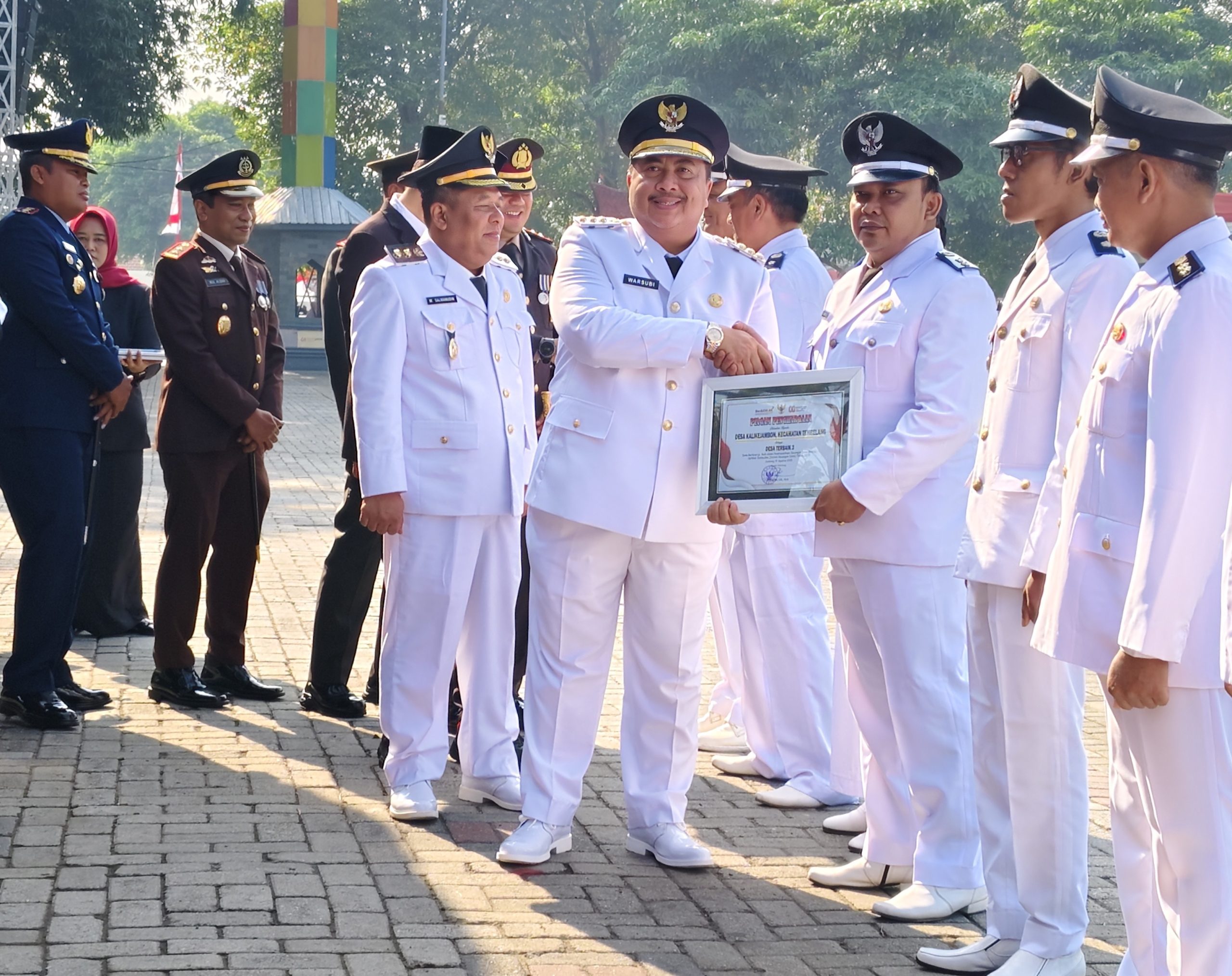 Sebagai wujud nyata dari apresiasi pemerintah daerah, pada momentum tersebut Bupati Warsubi didampingi Forkopimda memberikan penghargaan kepada sejumlah desa dan Badan Usaha Milik Desa (BUMDesa) yang menunjukkan kinerja luar biasa sepanjang tahun 2025. Penghargaan yang diberikan meliputi: Desa Pandanwangi, Kecamatan Diwek, atas dedikasinya dalam program percepatan penurunan stunting.