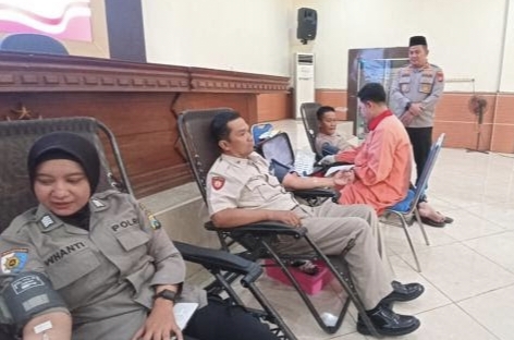 mediapetisi.net – Polres Jombang menggelar kegiatan donor darah dalam rangka memperingati hari jadi ke-77 Polisi Wanita (Polwan). Puluhan anggota Polres Jombang ikut serta dalam kegiatan kemanusiaan yang berlangsung di aula Graha Bhakti Bhayangkara (GBB) Mapolres Jombang. Rabu (27/8/2025)