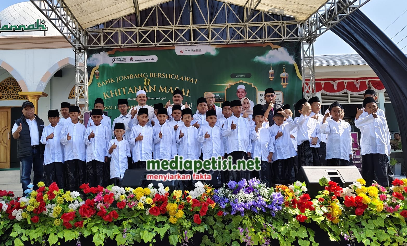 mediapetisi.net – PT BPR Bank Jombang Perseroda gelar sholawat bersama dan khitan massal dalam rangka memperingati Maulud Nabi Muhammad dan Hari Ulang Tahun (HUT) Kemerdekaan Republik Indonesia (RI) ke 80.