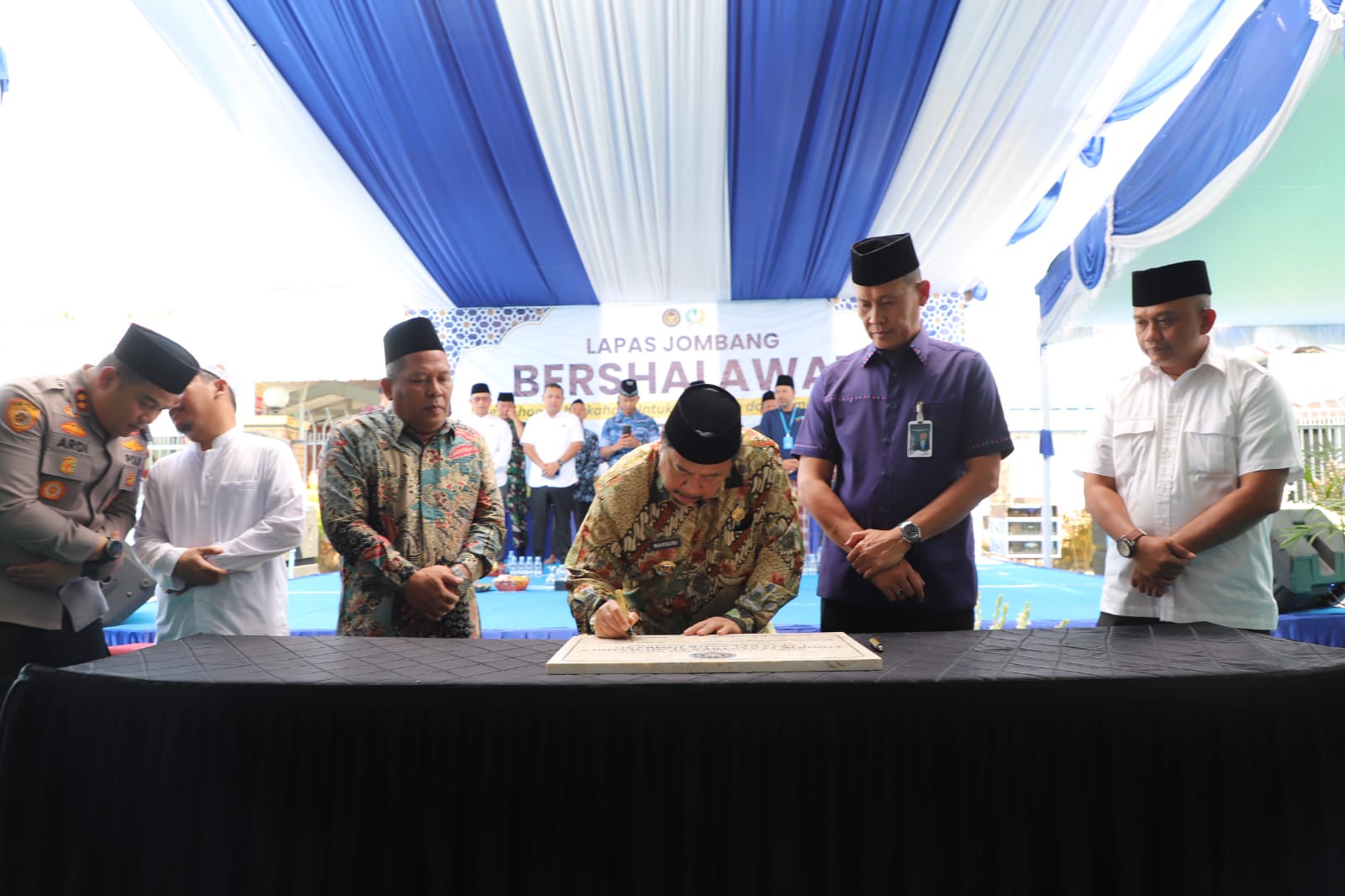 Caption Foto : Bupati Jombang saat menandatangani peresmian Pondok Pesantren Al-Muhajirin Lapas Jombang