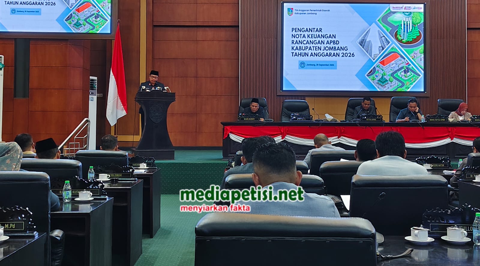 Bupati Jombang Warsubi menyampaikan Rancangan Anggaran Pendapatan dan Belanja Daerah (R-APBD) Tahun Anggaran 2026. Total anggaran yang diproyeksikan mencapai Rp2,6 triliun, dengan fokus pada pembangunan dan pelayanan masyarakat. APBD bukan sekadar hitungan angka, melainkan instrumen penting dalam menjalankan roda pembangunan daerah.
